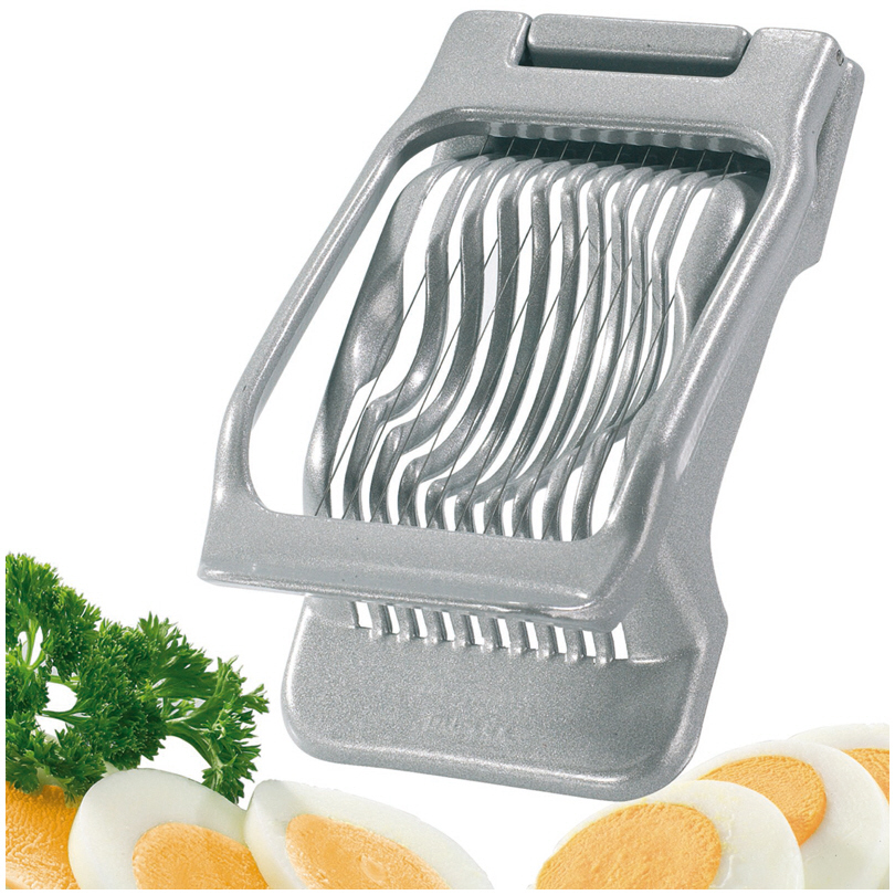 Strumento robusto per affettare l’uovo sodo in fettine tutte uguali, perfette per decorare piatti freddi o insalate.