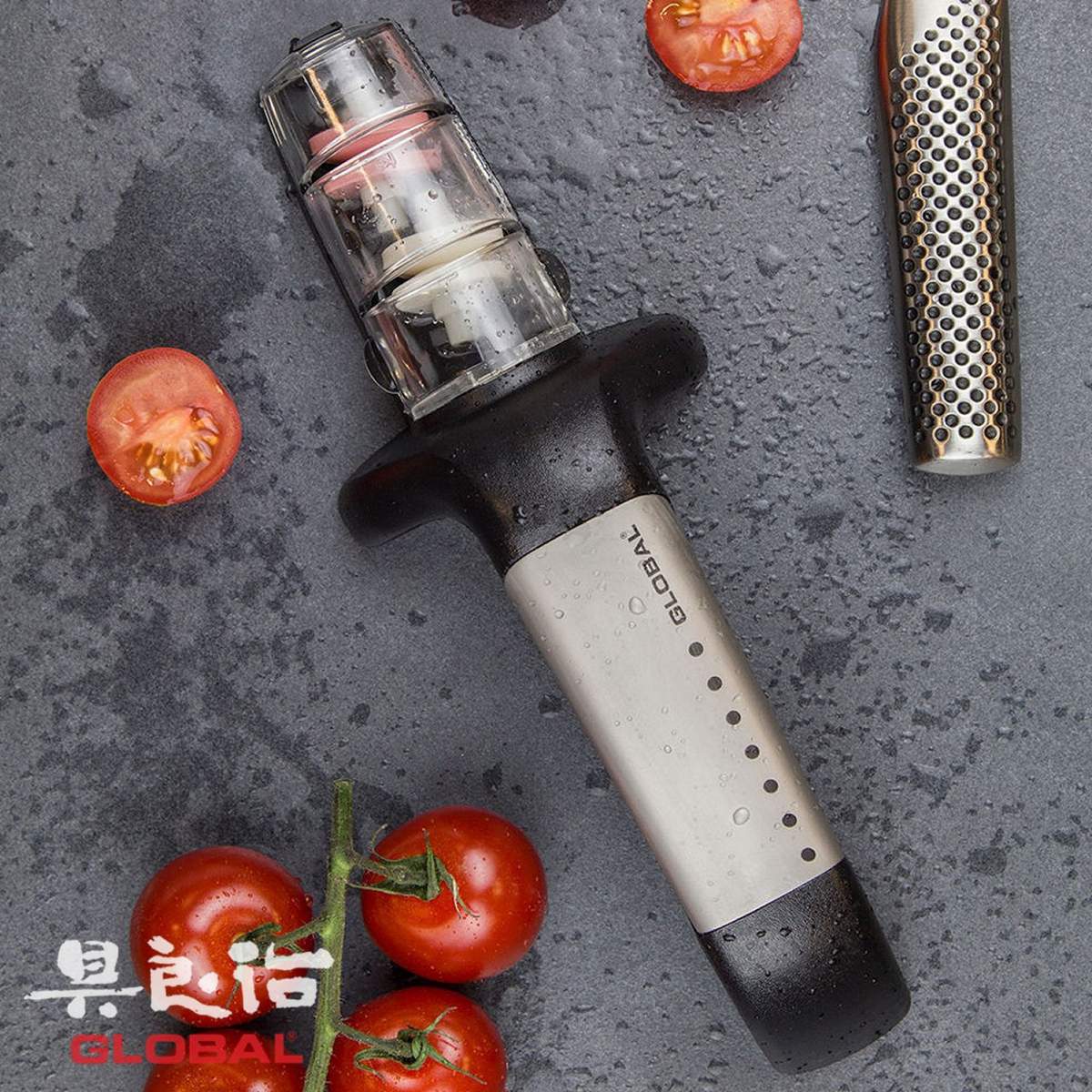 Comodo e facile da utilizzare questo affilacoltelli Global è dotato di impugnatura in acciaio inox e di due mole: una bianca a grana grossa per affilare e l’altra di colore rosa a grana fine per rifinire l’affilatura e lucidare il filo.