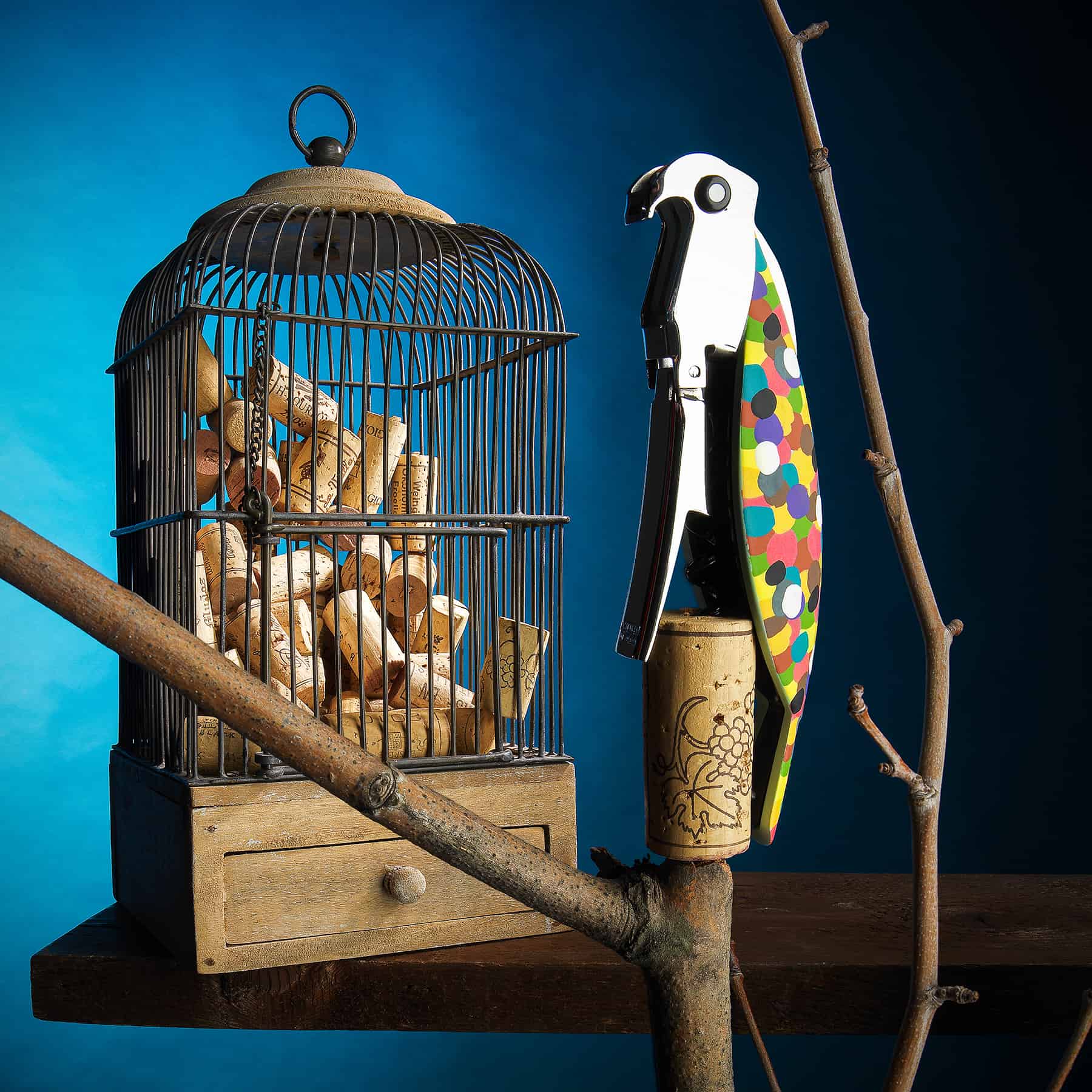 Cavatappi sommelier in alluminio pressofuso e PC. Decorato a mano, “Proust”. Licensed by Pulltaps. A partire dal 2004, l’anno di congiungimento della coppia “Anna G.” e “Alessandro M.”, tutti si auguravano un nuovo lieto evento nella classe tipologica dei cavatappi. Il piccolo Cavatappi sommelier “Parrot”, pratico utensile che si può anche tenere in tasca, si propone per soddisfare le attese.