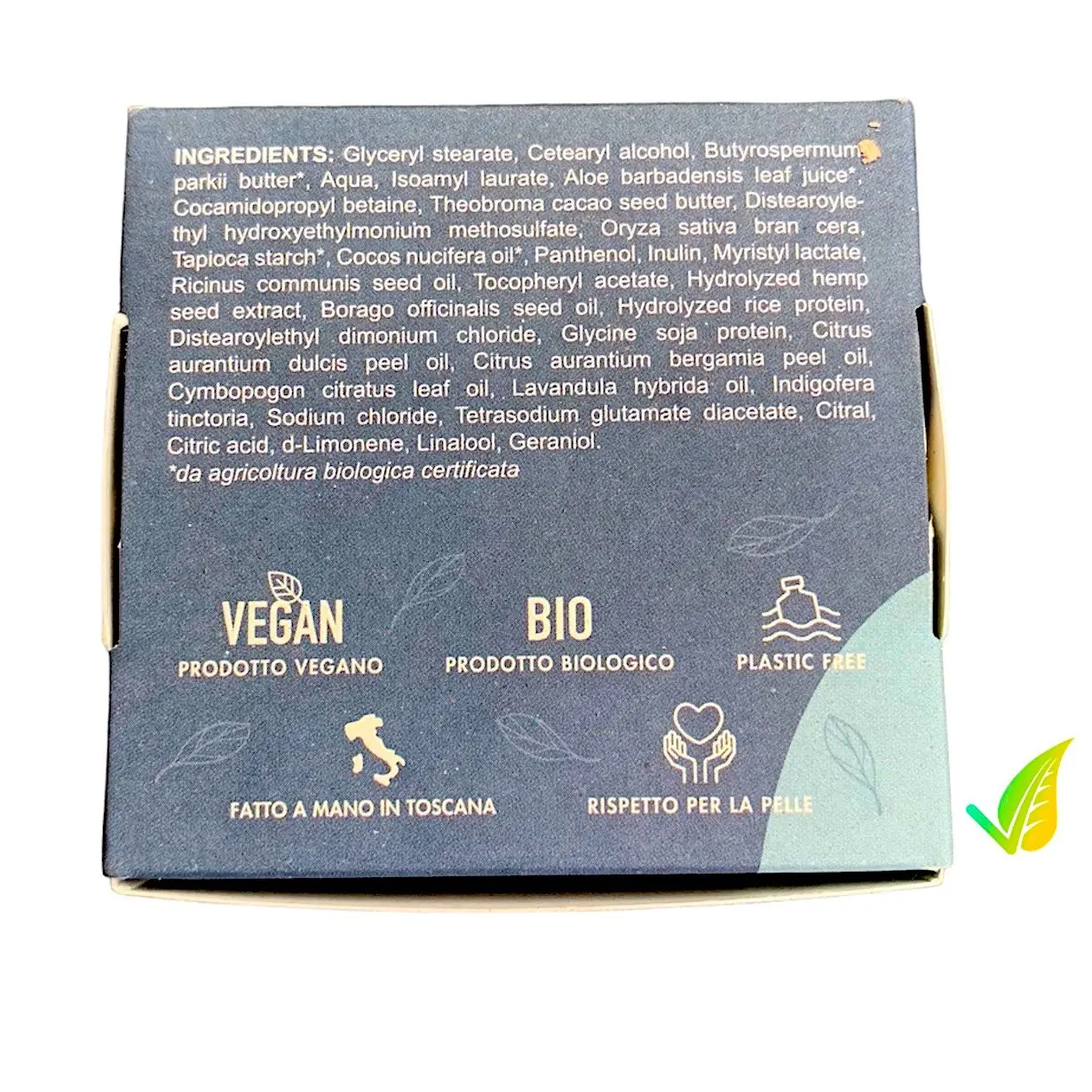 Infatti, è totalmente biodegradabile, prodotto con materie prime da agricoltura biologica e sostenibile ed è soprattutto privo di imballaggi in plastica, aiutando a ridurre l’inquinamento del pianeta. La sua formulazione solida inoltre comporta un minor spreco d’acqua!