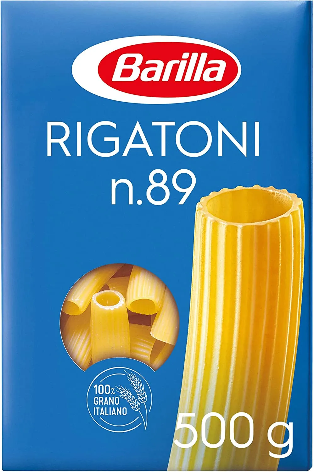 Caratterizzati dalla rigatura sulla superficie esterna e dal diametro importante, i Rigatoni Barilla trattengono perfettamente il condimento su tutta la superficie, esterna ed interna, restituendone ogni sfumatura.