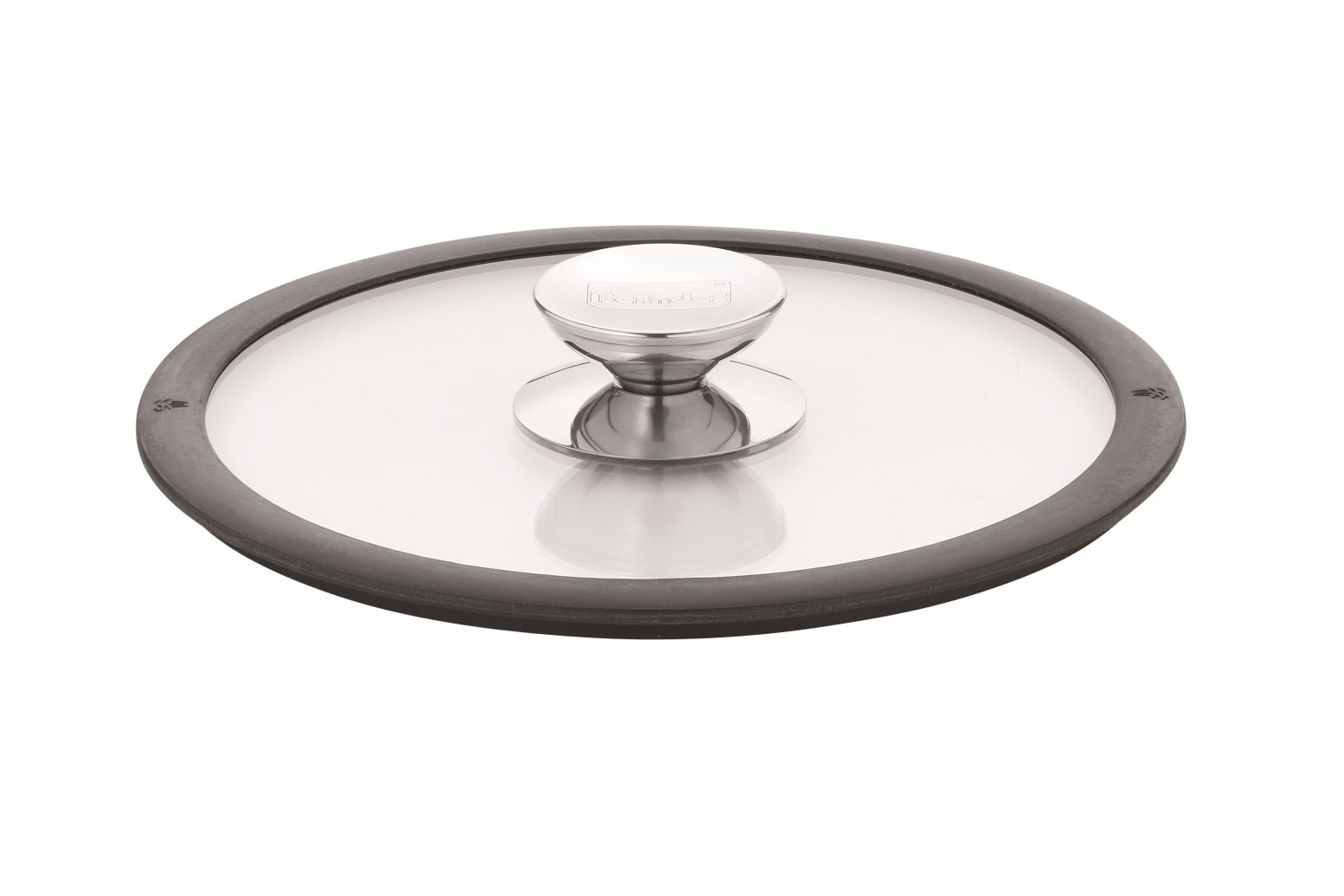 Coperchio in vetro borosilicato con bordo in silicone nero.