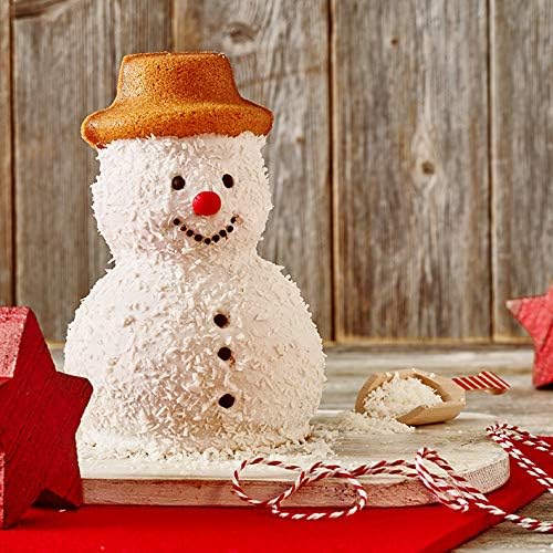 Lo stampo ha un rivestimento antiaderente di alta qualità per una facile rimozione della torta. Decorato innevato, ad esempio con granella di cocco, i dettagli del pupazzo di neve sono perfettamente enfatizzati dalla goffratura.
