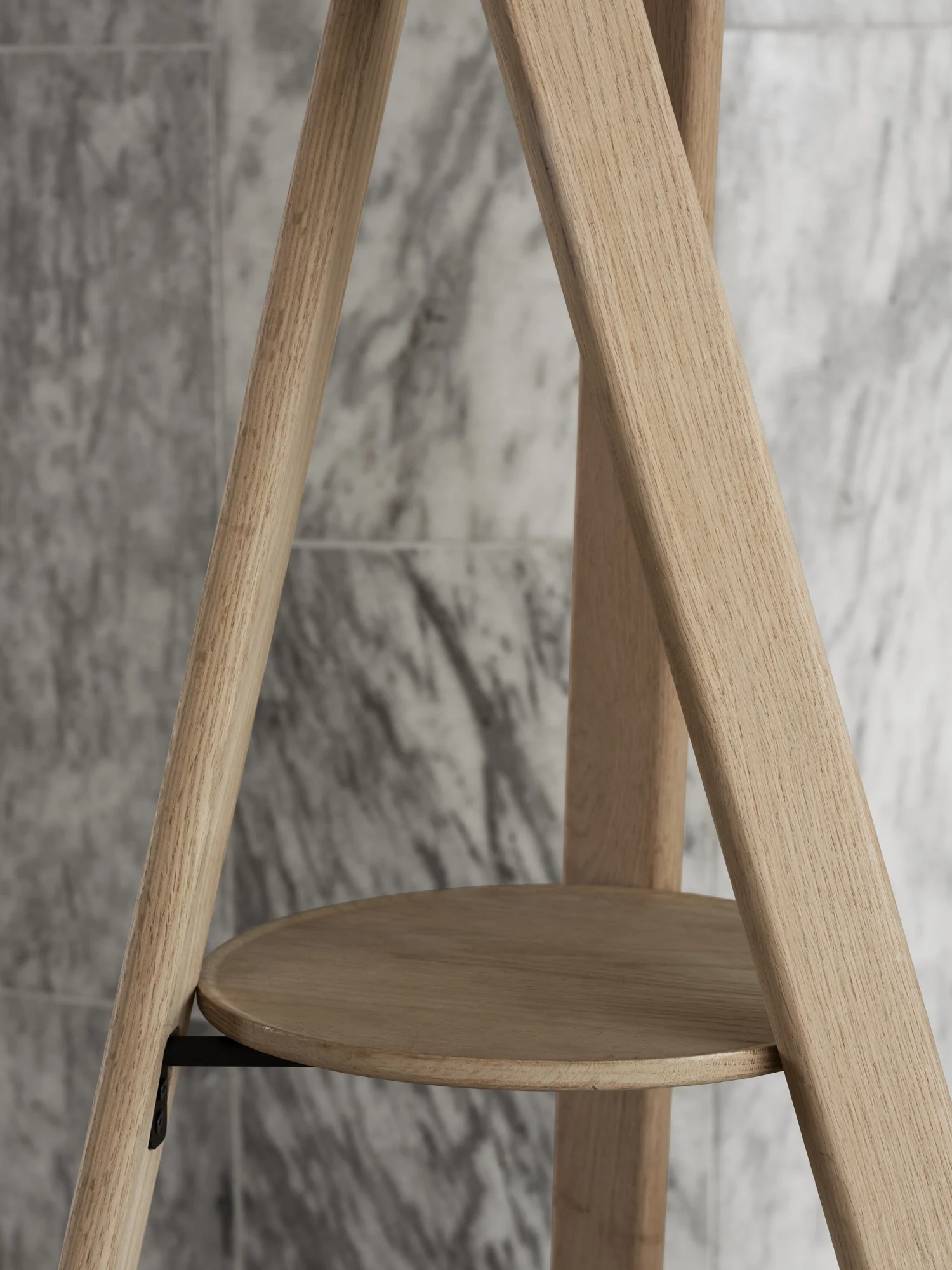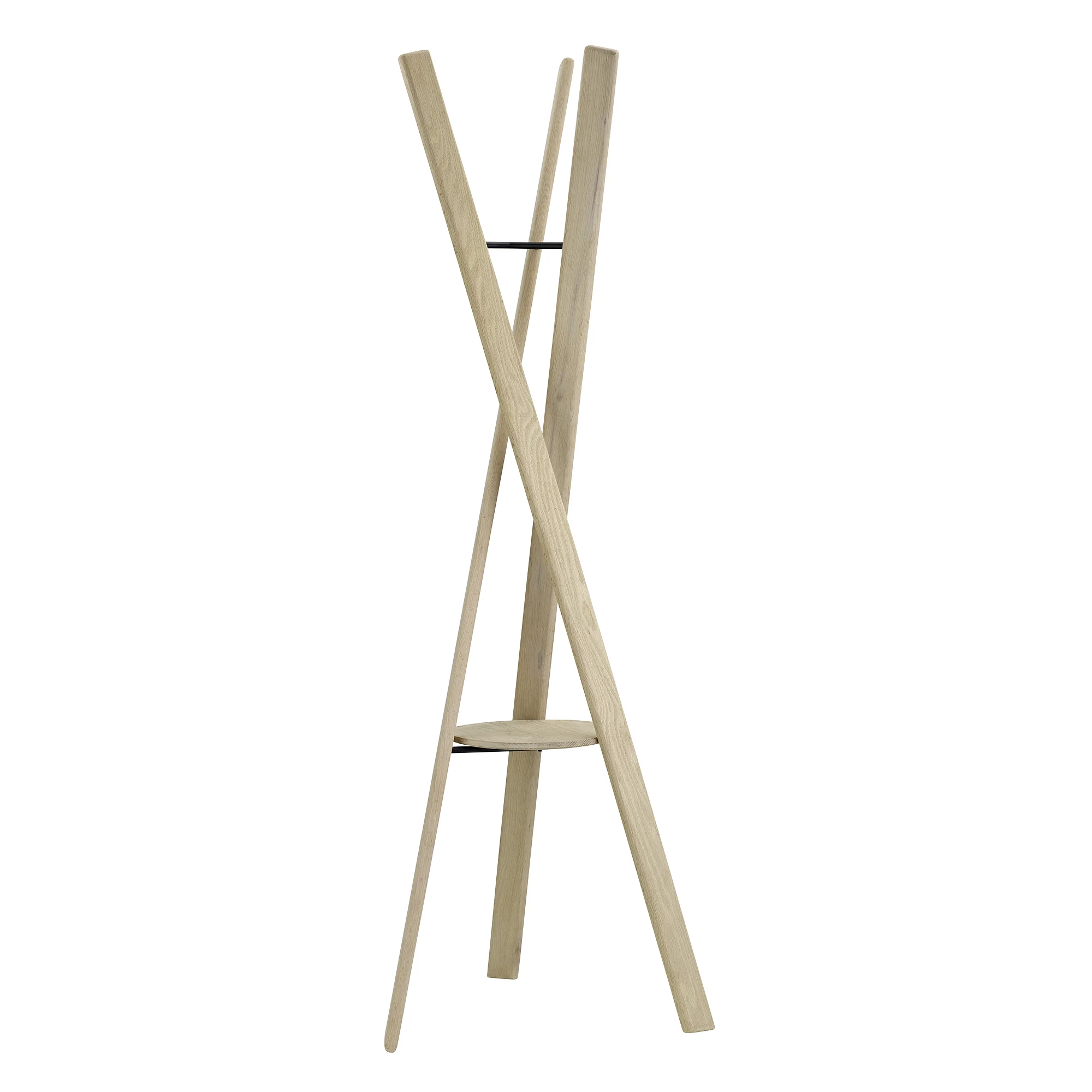 Con l’appendiabiti RAKKU, che in giapponese significa appendiabiti, il designer Kazushige Miyake ha creato una simbiosi unica tra geometria moderna e minimalismo senza tempo. La costruzione elicoidale è semplice quanto il design. Tre listelli di legno sono quasi curvati l’uno nell’altro e fissati da elementi metallici triangolari. Nonostante il design ridotto, la funzionalità di questo attaccapanni non viene affatto trascurata. Le chiavi o le borse possono essere appoggiate su un piatto rotondo. I tre elementi in legno offrono spazio per giacche, sciarpe e cappelli e, se necessario, è possibile appendere delle grucce ai collegamenti metallici.