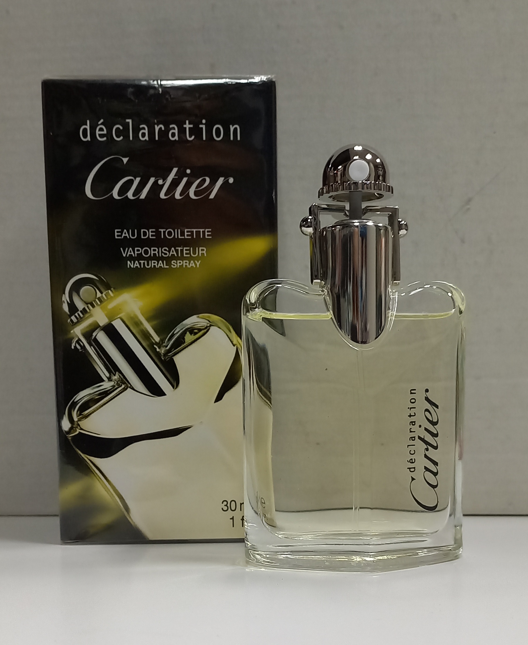 Declaration è una fragranza maschile di Cartier del gruppo Legnoso Floreale Muschiato, che fu lanciata in commercio nel 1998 e noi vi offriamo una delle sue prime edizioni ( come si vede in foto ) col formato da 30 ml eau de toilette. Il Naso creatore della fragranza è Jean-Claude Ellena. Le note di testa sono Arancia Amara, Carvi, Betulla, Bergamotto, Coriandolo, Mandarino, Neroli e Artemisia; le note di cuore sono Cardamomo del Guatemala, Pepe, Zenzero, Iris, Ginepro, Cannella, Rizoma di Iris e Gelsomino; le note di base sono Vetiver di Tahiti, Tè, Cedro, Cuoio, Muschio di Quercia e Ambra.