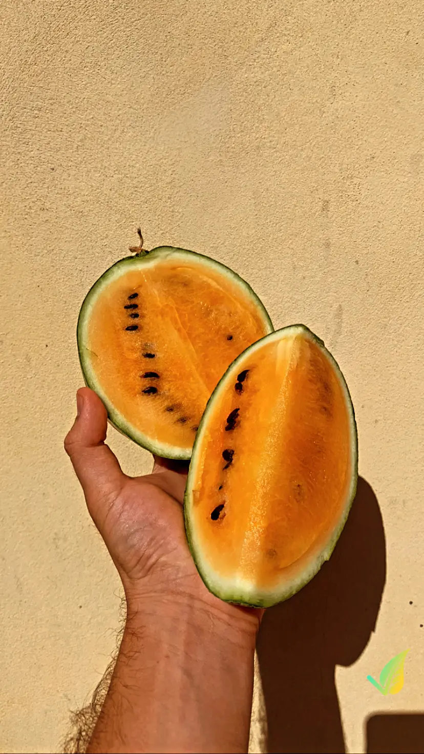 2. Polpa gialla: a differenza del tradizionale cocomero rosso, il Cocomero Giallo ha una polpa di colore giallo intenso, molto dolce e succosa.