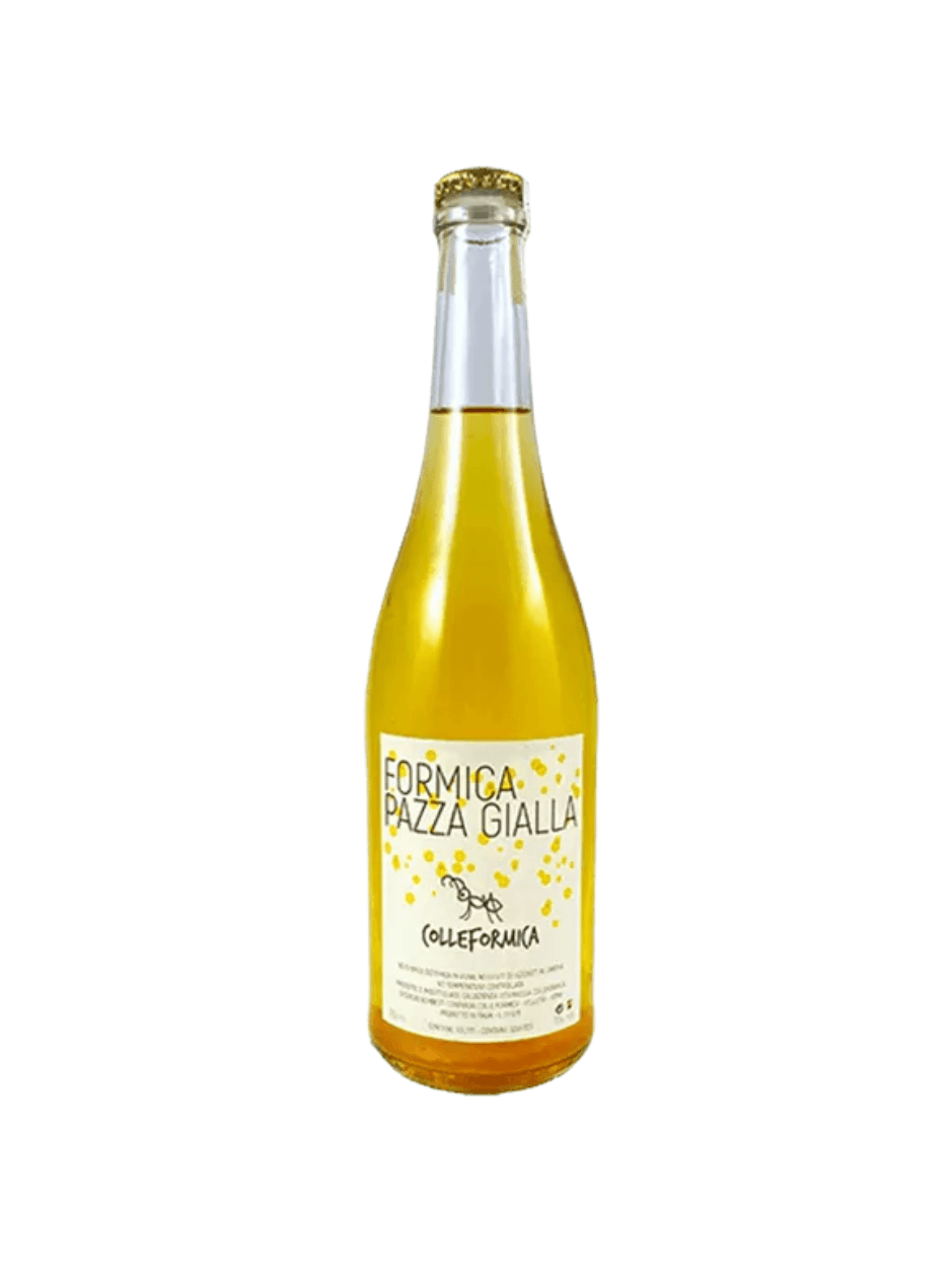 L’uva della Formica Pazza Gialla di Colle Formica proviene da terreni vulcanici seguendo la filosofia della coltivazione biologica, viene raccolta a mano e portata in cantina dove viene vinificata in bianco in vasche di vetroresina, viene lasciata fermentare spontaneamente per mezzo di lieviti autoctoni e lasciata affinare sempre in vasche di vetroresina. La rifermentazione avviene in bottiglia per mezzo di lieviti autoctoni aggiunti.