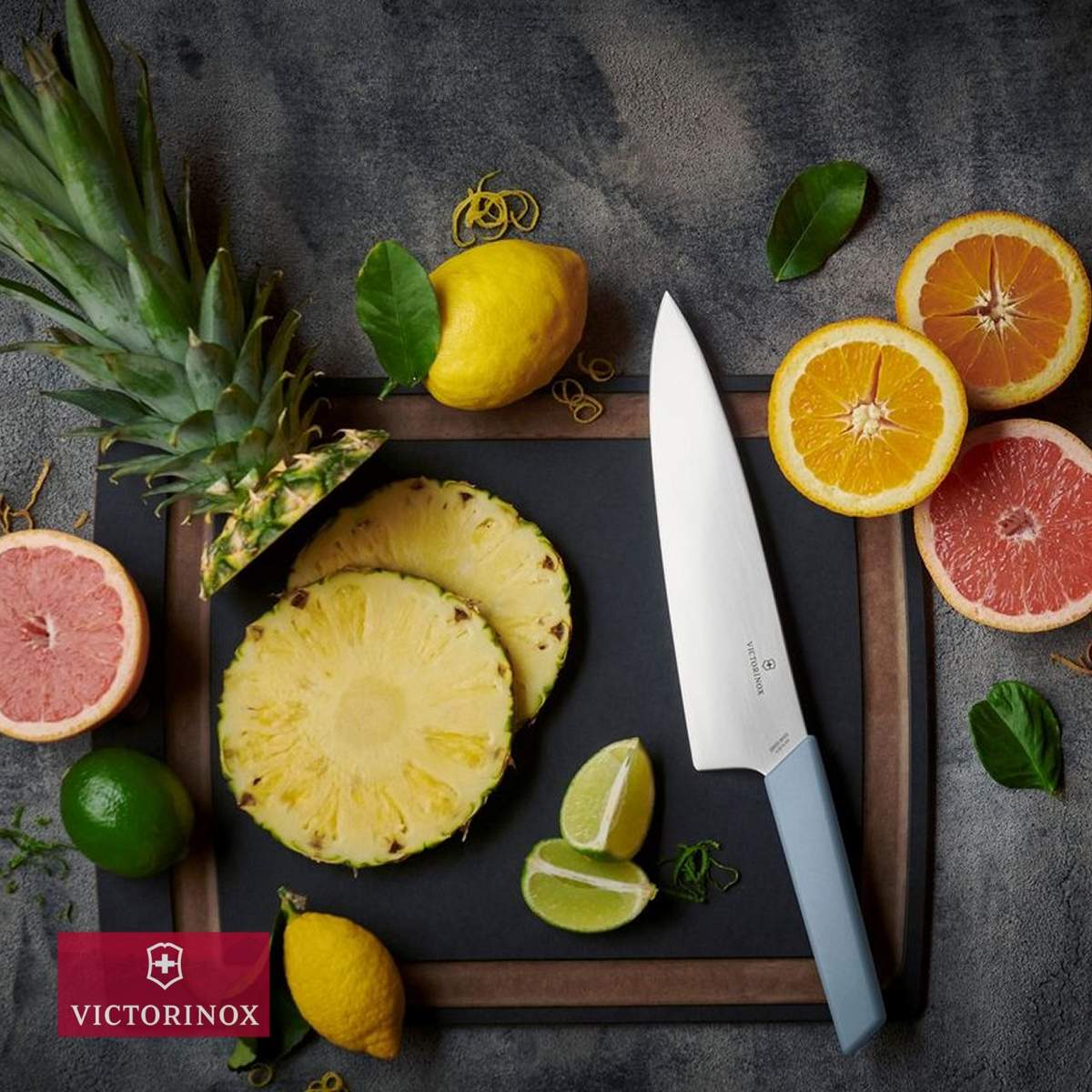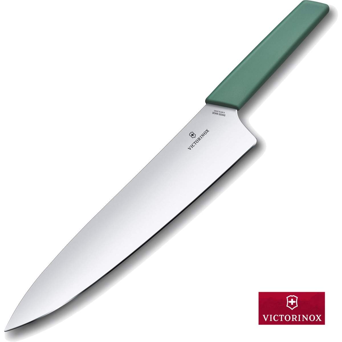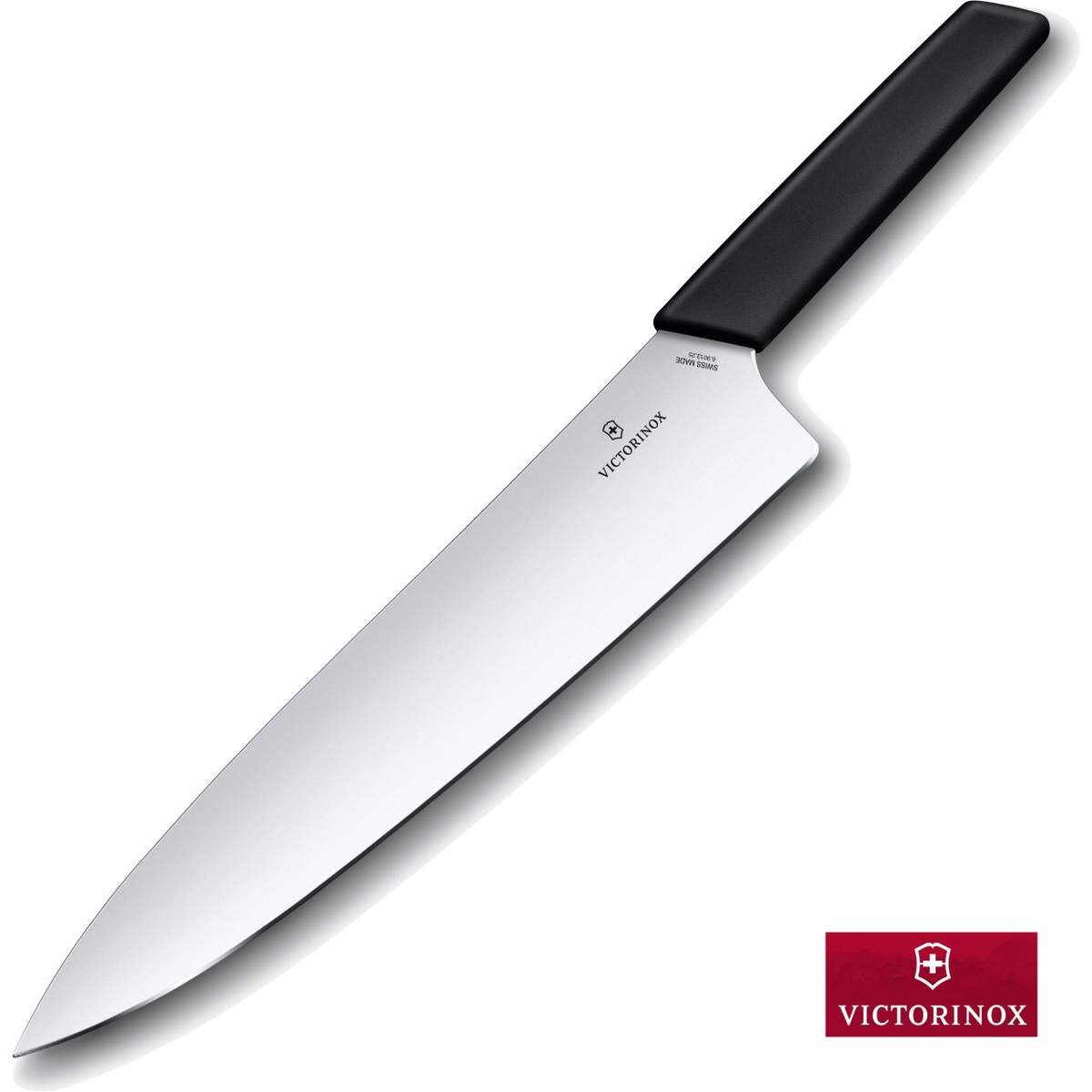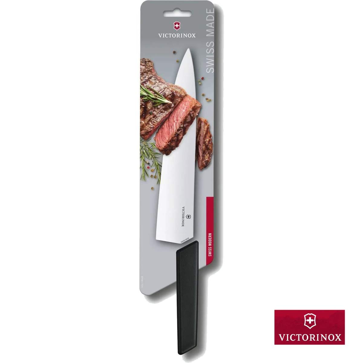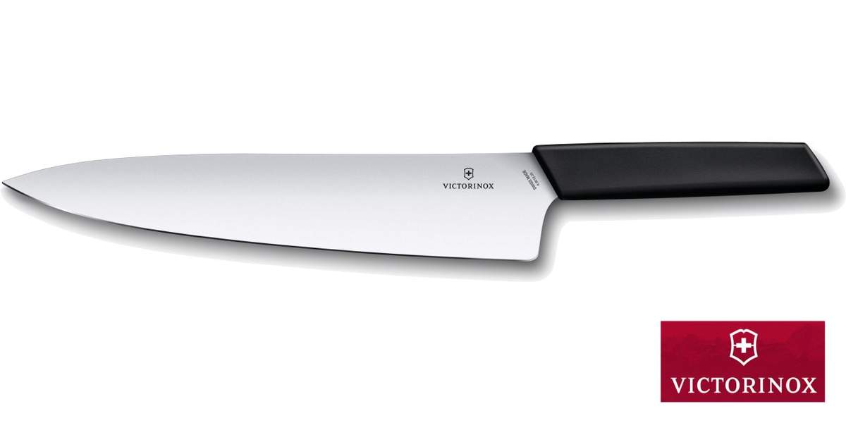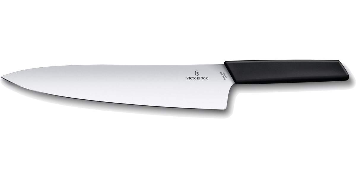 Coltello da chef con lama in acciaio inossidabile da 25cm della linea Swiss Modern, perfettamente bilanciato cosi da offrire prestazioni eccellenti durante il taglio di carni di grosse dimensioni.