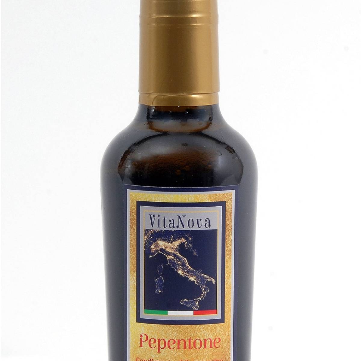 Pepentone. Condimento al peperoncino in olio VitaNova “Vitruvio” ml 250. Olio EVO mono varietà Itrana, con alti polifenoli, coltivato in regime biologico. Olio Extra Vergine di Oliva estratto a freddo in frantoio a ciclo continuo a due fasi. Ricavato da olive raccolte entro i primi giorni di novembre e molite entro lo stesso giorno della raccolta. Olio nutraceutico per l’alta concentrazione di polifenoli contenuti e l’elevato contenuto di vitamina E (tocoferoli). Acidità bassissima pari a 0.23%. Polifenoli totali all’imbottigliamento: 400 mg/kg. “Pepentone” è indicato particolarmente come condimento piccante sui piatti di carne, pesce, verdure grigliate o cotte. La raccolta delle olive da oliveti salvati dall’abbandono garantisce l’assoluta assenza di sostanze chimiche, fitofarmaci e allergeni.