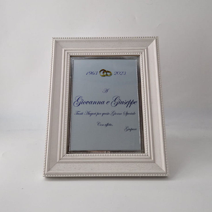 Cornice Bianca Semplice 21,5×26,5 cm, completa di Targa in Alluminio 15×20 cm con incisione.