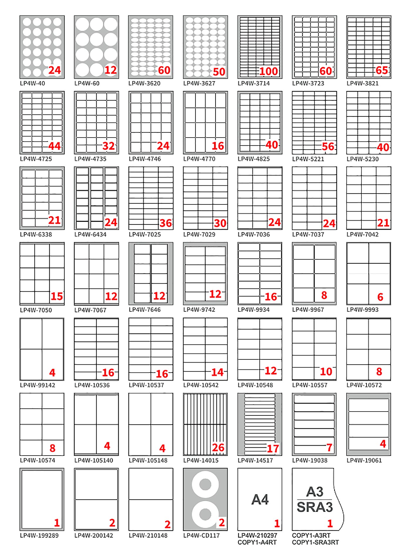 Ad esempio modello con Numero Rosso 50, Numero di etichette totali 50×100 = 5.000 etichette stampate fornite.