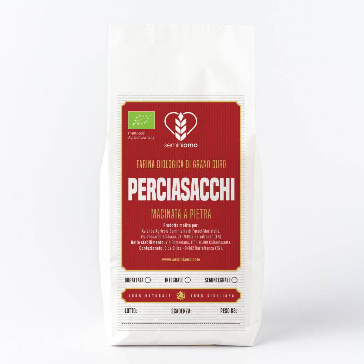 Farina biolocica di grano duro Perciasacchi 100% siciliano, molita a pietra naturale.