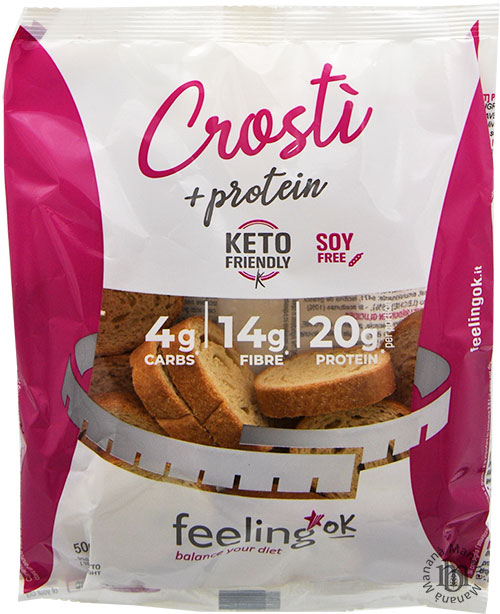 Solo 4 g di carboidrati, 20 g di proteine e 14 g di fibre: crostini croccanti al gusto neutro, ideali per diete chetogeniche, low carb e ad alto contenuto proteico.