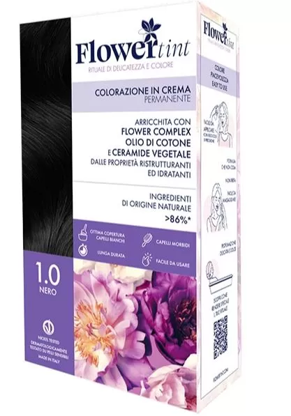 Delicatezza ed espressione cromatica per una nuova esperienza di colorazione. Colore • Piacevolezza • Easy to use Una linea di colorazione permanente in crema arricchita con: Estratto di camomilla: dal potere addolcente ed emolliente Estratto di elicriso: dalle proprietà idratanti e protettive Olio di cotone: con proprietà antiossidanti e ad azione nutriente Ceramide vegetale:per una struttura del capelli più compatta e forte Più del 86% di ;obiettivo di cambiare il rituale del colore fai da te, spesso stressante, un momento che si rimanda il più possibile e si preferirebbe evitare.L’occasione per un nuovo momento per te, per riconnetterti con l’energia della natura. Colorare i capelli diventerà un momento di piacere.La formulazione in crema vellutata coccola i tuoi capelli mentre li colora e contribuisce a renderli luminosi, morbidi e visibilmente più sani. Queste tinte vogliono regalare efficacia, quindi ottima copertura dei capelli bianchi, colore a lunga durata e capelli morbidi con una facile applicazione. Allo stesso tempo offrono anche un rituale speciale a cui dedicarsi durante il tempo di posa della colorazione. Un QR code sul packaging darà la possibilità di scegliere tra diverse attività per ritagliarsi un momento per sé: 30 minuti di sport, una ricetta da preparare, l’oroscopo, una playlist o un podcast da ascoltare. Un’idea decisamente originale. Le colorazioni Flowertint sono permanenti e disponibili in 24 tonalità. SENZA Ammoniaca, Resorcina, Parafenilendiammina Durata di posa: 30 minuti La confezione contiene:Latte Attivatore da 60 ml, Crema Colorante da 60 ml e Trattamento Dopo Colore da 20 ml.Quest’ultimo è necessario per richiudere le squame e garantirsi la durata della colorazione.Non serve lo shampoo dopo l’applicazione, la texture è fluida ma non liquida, perciò non cola. Garanzie: Vegano Dermatologicamente testato su pelli sensibili Nickel tested Approvato dal 95% delle donne: effetto e gradevolezza