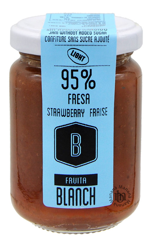 Le confetture artigianali Fruita Blanch offrono tutto il sapore autentico della frutta grazie a una ricetta unica con il 95% di fragole. Il gusto è naturale e intenso, con la stessa consistenza delle marmellate tradizionali ma senza zuccheri aggiunti.