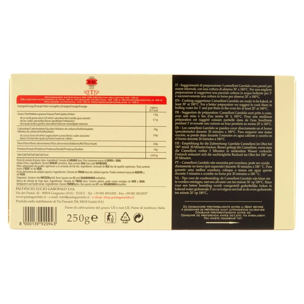 Arrivano dall’Emilia Romagna, i Cannelloni Garofalo rielaborano con gusto e sapienza artigiana la ricetta originale di questa specialità.