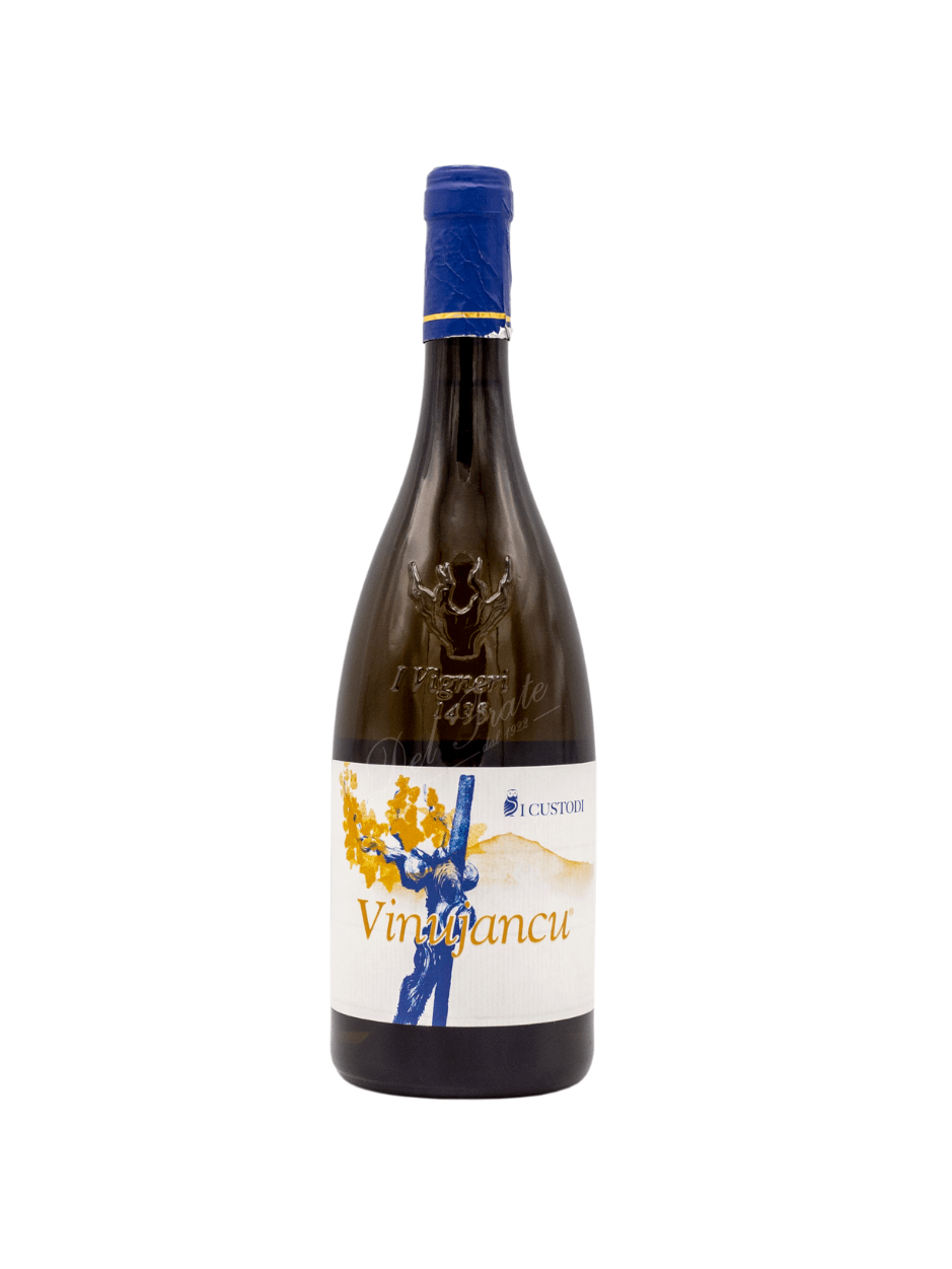 Vinujancu è un bianco prodotto nel comune di Bronte (CT) da I Custodi delle Vigne dell’Etna. Ci troviamo sul versante nord-occidentale della Muntagna, nome con cui gli abitanti del posto chiamano il vulcano attivo più alto d’Europa. L’azienda agricola I Custodi delle Vigne dell’Etna è guidata da Mario e Manuela Paoluzi, coadiuvati per la parte agricola dai viticoltori facenti parte dell’associazione I Vigneri, fondata dall’enologo catanese Salvo Foti per tutelare e tramandare le tradizioni contadine locali. Per i trattamenti in vigna non è previsto l’uso di prodotti chimici di sintesi, e tutte le lavorazioni vengono svolte a mano o con l’aiuto di un mulo. Lo stesso Foti si occupa poi della vinificazione delle uve coltivate nei vigneti aziendali, dando vita a liquidi profondamente territoriali. Le fermentazioni sono spontanee, e i vini non subiscono alcun processo di chiarifica o filtrazione. Vinujancu è un bianco dall’ottimo potenziale di evoluzione in bottiglia, ottenuto da un uvaggio di Carricante, Riesling Renano, Grecanico e Minnella. Le uve provengono da un vigneto ad alberello situato a un’altitudine di 1200 metri sul livello del mare. Le forti escursioni termiche e i terreni di origine vulcanica consentono di portare in cantina una materia prima molto ricca di precursori aromatici e di mineralità. Dopo la pressatura dei grappoli, il mosto fermenta in tini di acciaio inox, e una volta divenuto vino affina a lungo, prima all’interno degli stessi contenitori, poi in bottiglia. Vinujancu presenta uno splendido colore giallo paglierino con riflessi dorati. I profumi sono caleidoscopici, e ricordano la frutta a pasta gialla, i fiori di tiglio e gli idrocarburi, in un quadro complessivo di estrema finezza. Al palato il vino è fresco, dinamico, e la sferzante acidità rende la persistenza lunga e appagante. Perfetto in abbinamento a piatti della cucina marinara, Vinujancu può accompagnare anche formaggi caprini freschi.