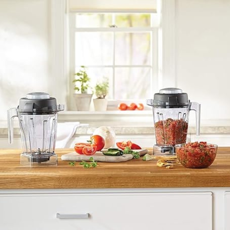 La pulizia del contenitore è semplice e veloce: basta riempirlo a metà con acqua calda e poche gocce di detersivo, farlo funzionare alla massima velocità per 30-60 secondi e sciacquarlo accuratamente. È compatibile con i frullatori Vitamix® Professional Series (750, 300 e 500), Explorian Serie E310 e Total Nutrition Center 5200, rendendolo uno strumento versatile e indispensabile per la tua cucina.