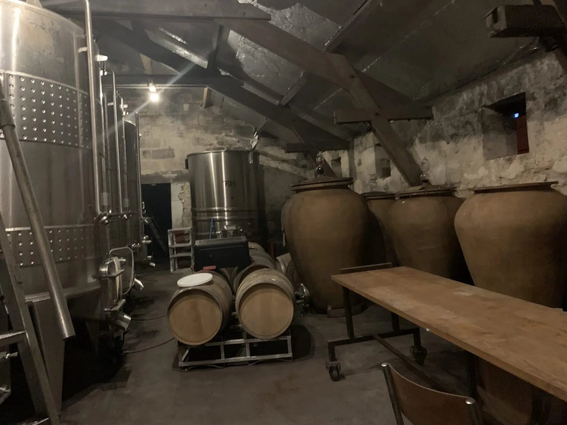 La vinificazione avviene per immersione delle vinacce (in botti inox), poi “glougloutage” in anfora di terracotta (senza follature né rimontaggi), con qualche cuvée passata a mano su setaccio di rovere (metodo ancestrale risalente al 1900, applicato in azienda dalla prima cuvée del 2003), invecchiamento da 8 a 30 mesi in botti di rovere o anfore (50/50 su tutto).