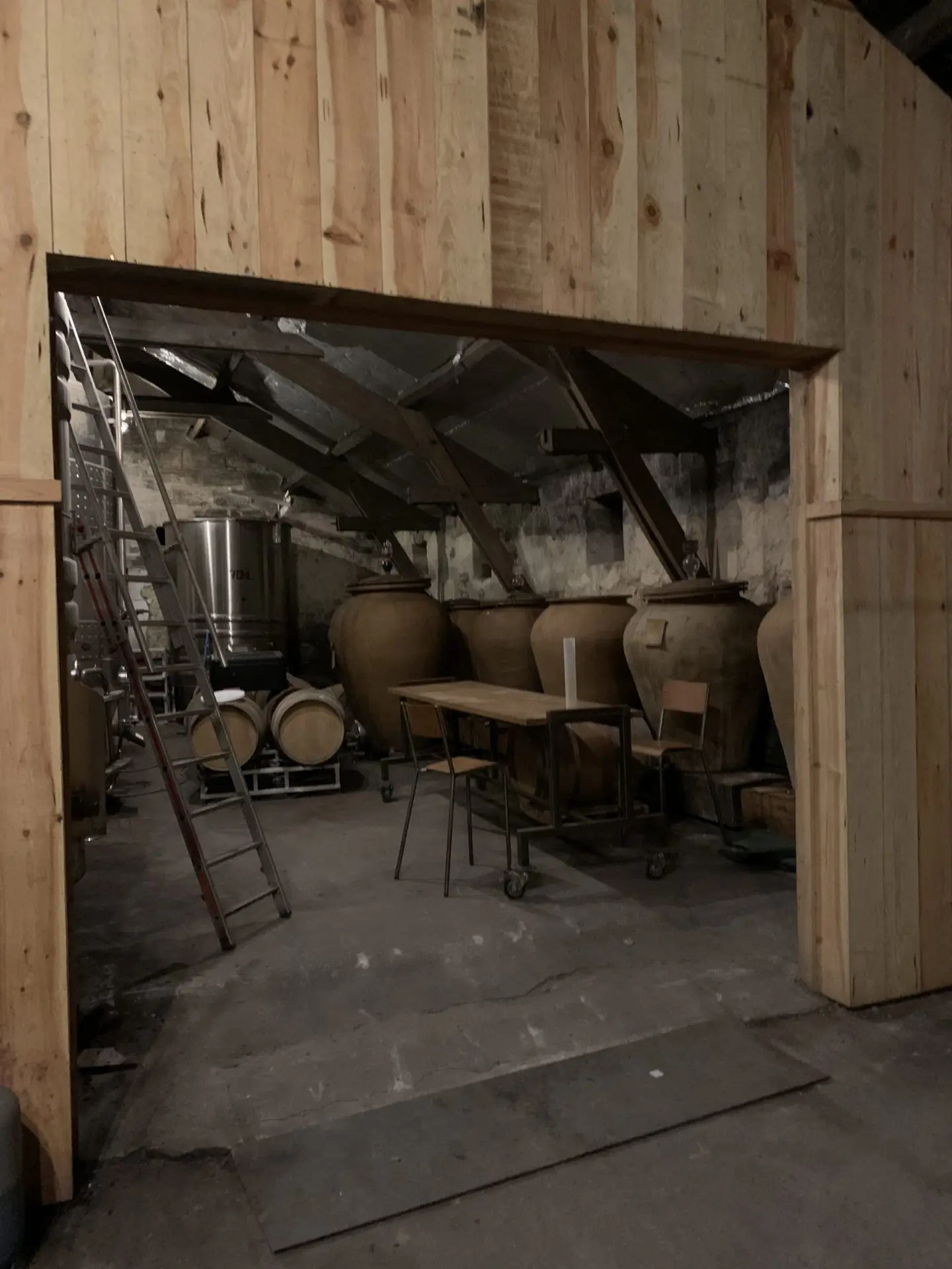 semplicità e complessità, assemblaggio di affinamento in acciaio inox, in botte e anfora.