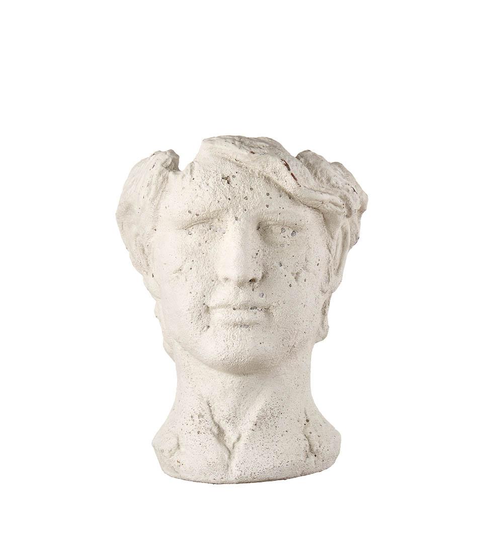 Vaso scultura testa Uomo. Un complemento d’arredo ispirato dalle forme classiche rivisitate dal design moderno. Da abbinare al vaso scultura testa Donna dell’ispirazione Modern Country per una coppia che arreder? con eleganza il vostro living.