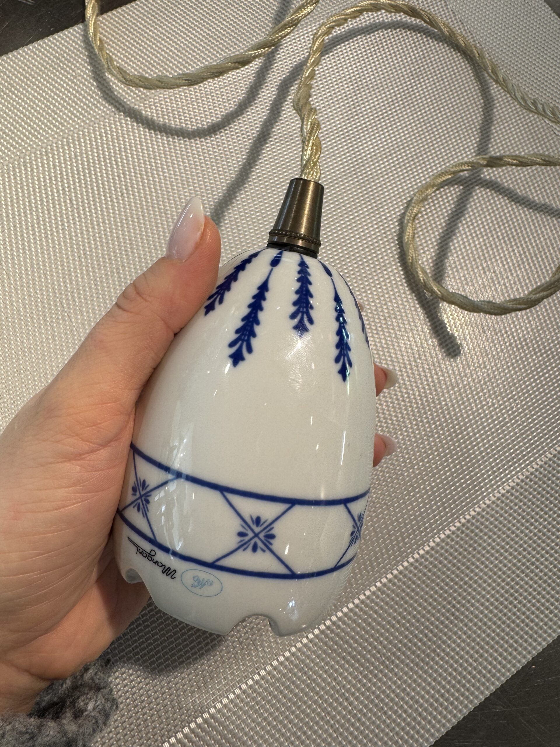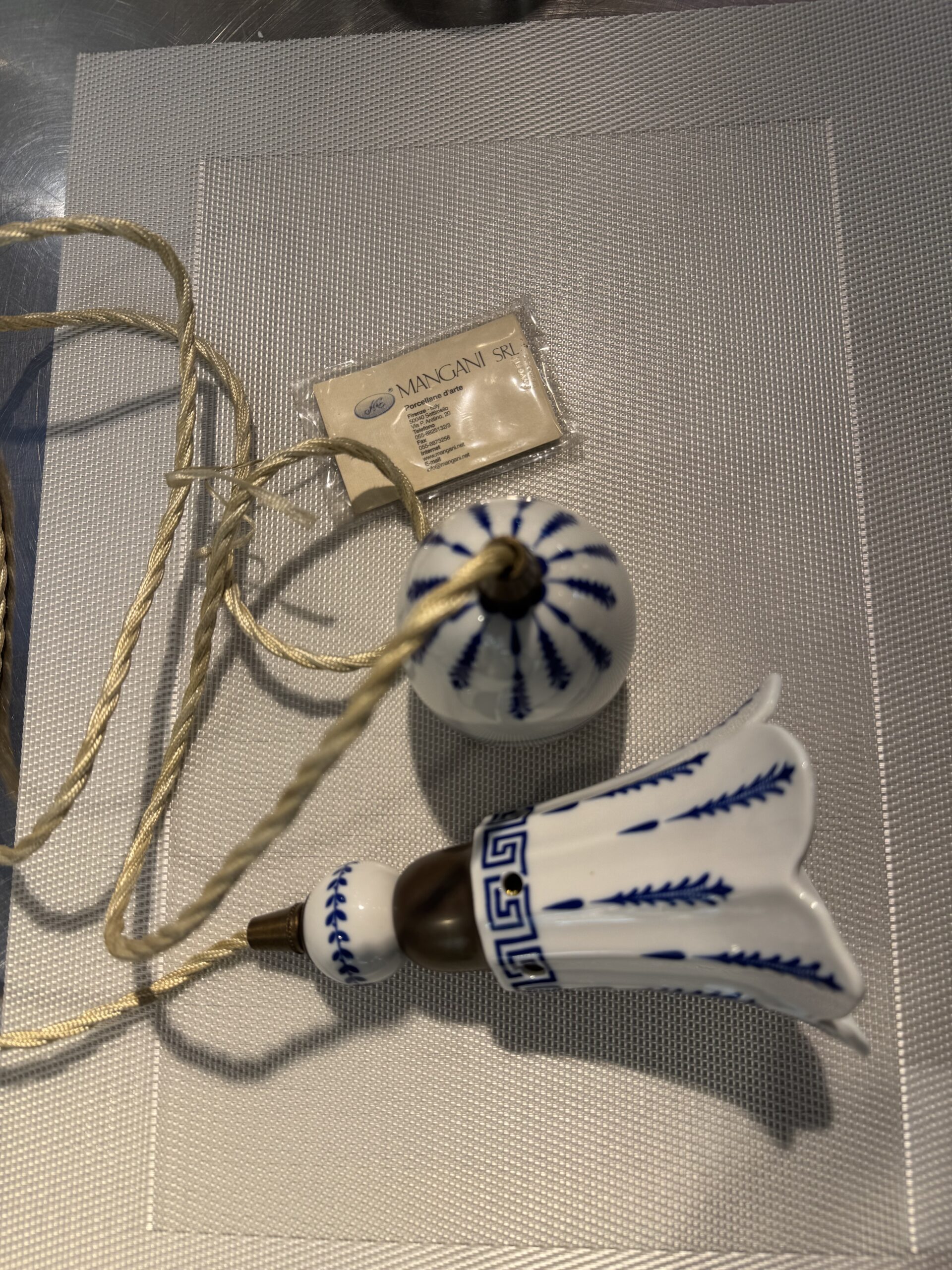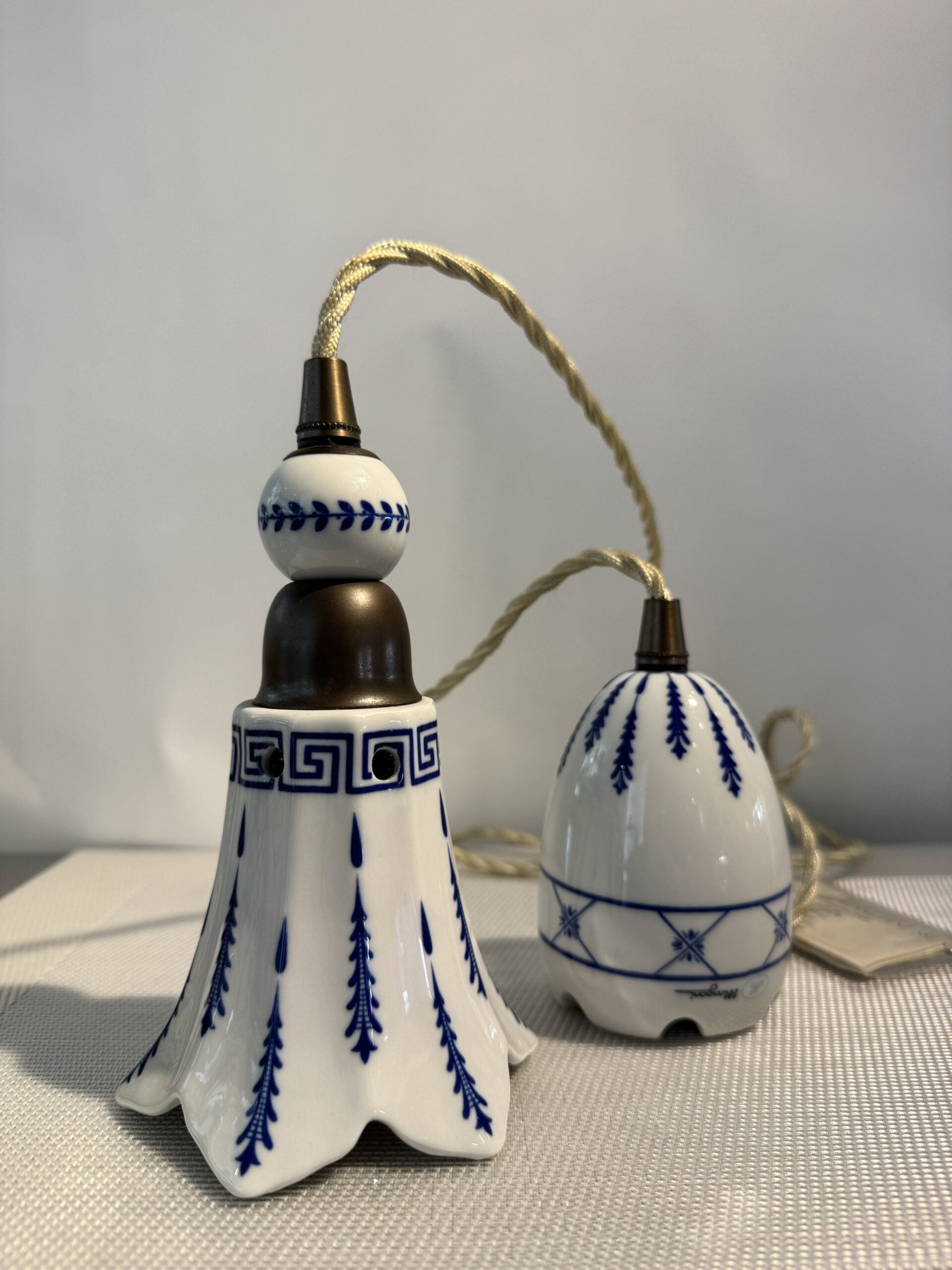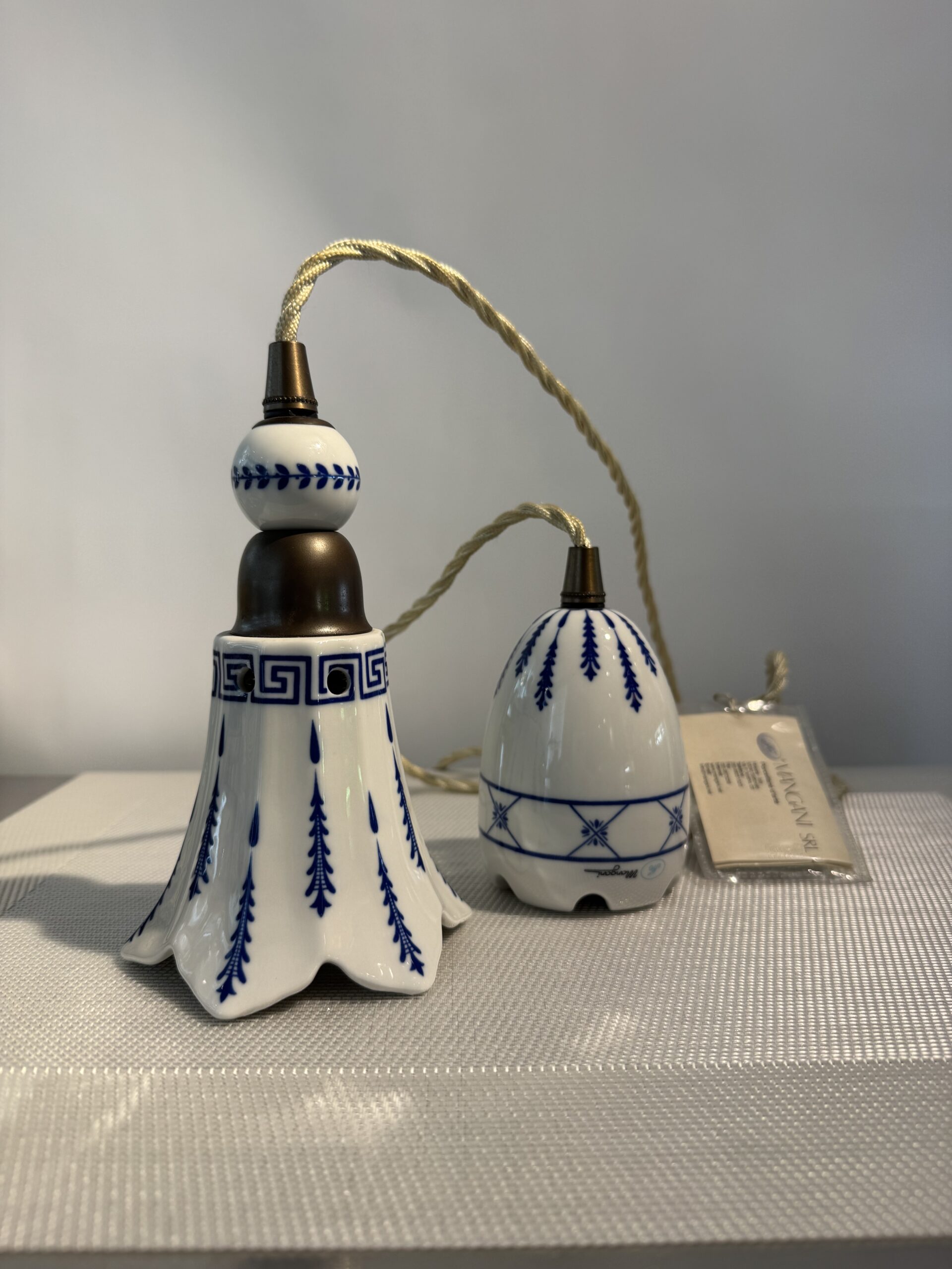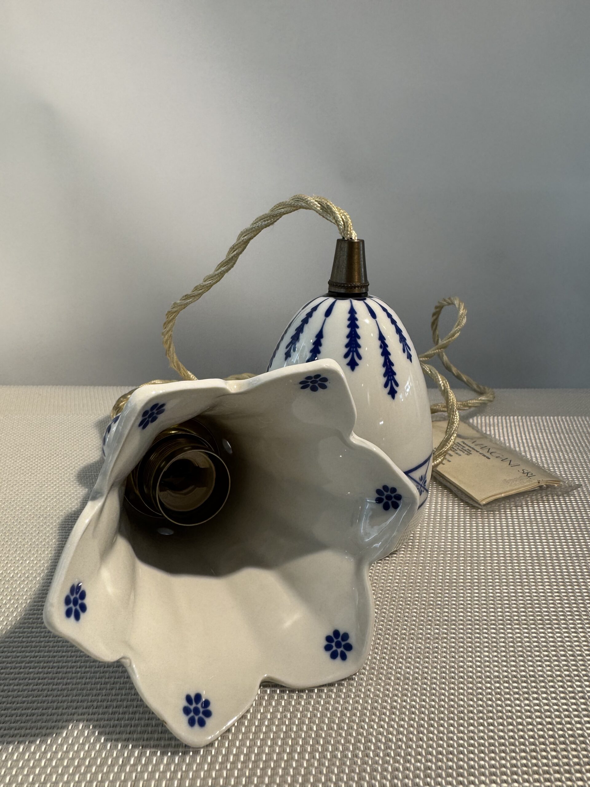 Lampadario da sospensione in Porcellana d’arte, con decori blu, made in Italy.
