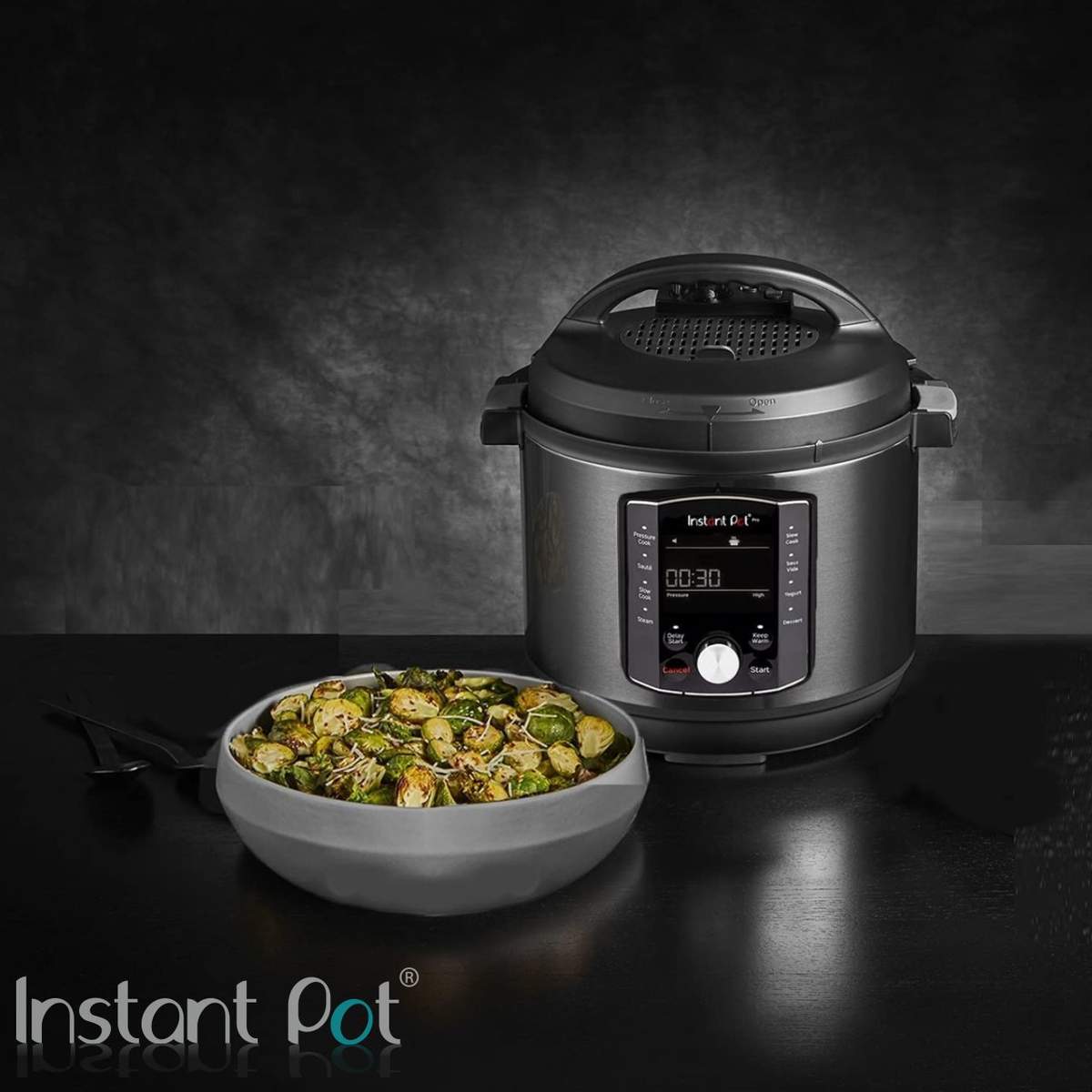 Come tutte le Instant Pot ha una scocca esterna in acciaio inox con finitura nera opaca sulla quale si trova il diplay LCD più luminoso e intuitivo e una manopola centrale per regolare tempo e temperatura.