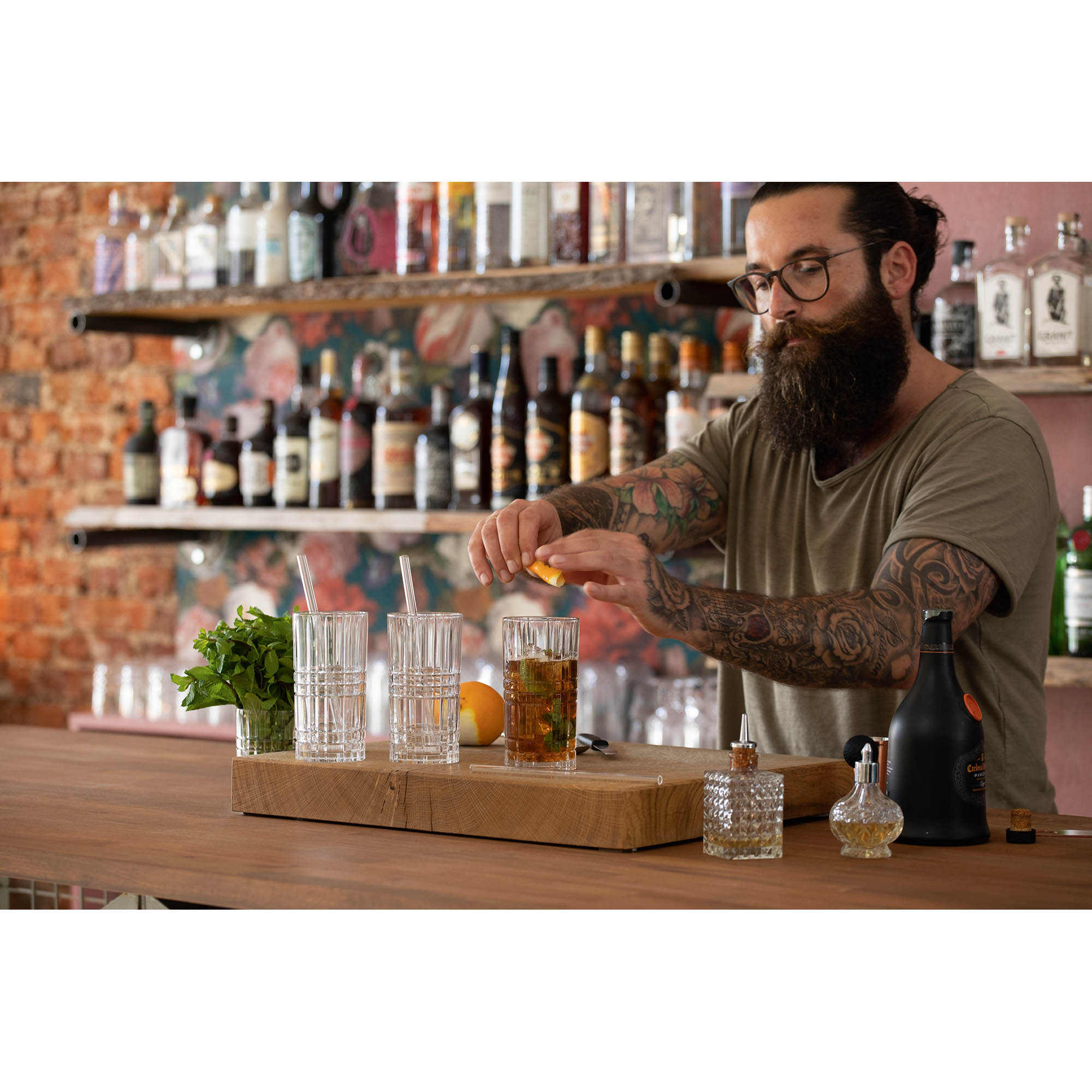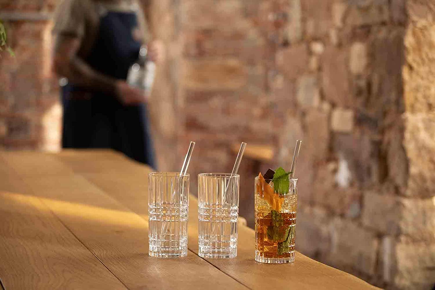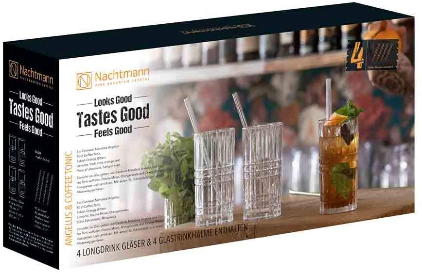 Contenuto della confezione: 1 set da 9 pezzi, Tastes Good, 103144, 4 bicchieri (capacità: 445 ml, altezza: 15,1 cm), 4 cannucce (lunghezza: 21,0 cm), 1 spazzola per la pulizia (lunghezza: 21,0 cm).