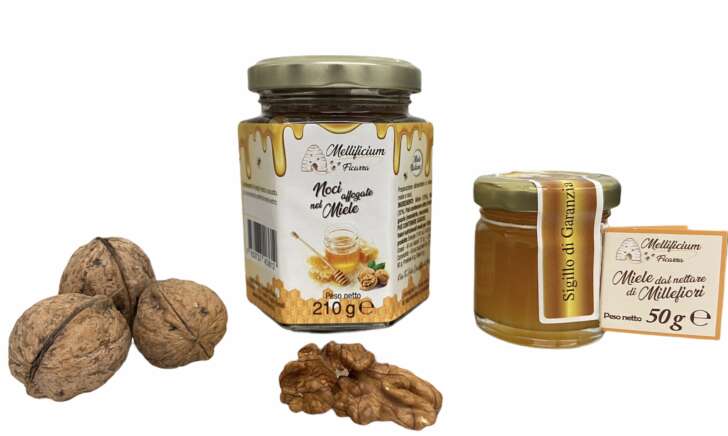 Noci affogate nel miele. Ideale per guarnire torte, crostate e dolci di vario genere. Gusto inimitabile!