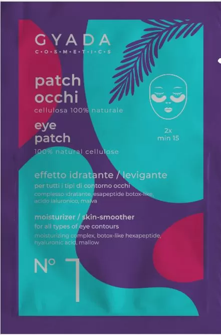 Ideali per ogni tipo di pelle a qualsiasi età. Formulati con ;uso: aprire i patch occhi e applicarli sul contorno occhi. Lasciare in posa per almeno 15 minuti.Rimuovere i patch occhi e massaggiare il prodotto residuo fino a completo assorbimento. Ingredienti: Aqua, Propanediol, Glycerin, Glucomannan, Sodium hyaluronate, Palmitoyl hexapeptide-19, Hydrolyzed caesalpinia spinosa gum, Hydrolyzed tomato skin, Malva sylvestris leaf extract (*), Sodium lactate, Sodium PCA, Fructose, Glycine, Niacinamide, Urea, Inositol, Lactic acid, Citric acid, Tetrasodium glutamate diacetate, Ethylhexylglycerin, Caesalpinia spinosa gum, Sodium benzoate, Potassium sorbate, Benzyl alcohol, Phenoxyethanol. (*) da agricoltura biologica Formulato con: 0%: ALCOHOL-BHA-BHT-COLOURANTS-EDTA-PEGPARABENS-PETROLATUM-SLES-SLS-SILICONES NICHEL TESTED <0.0001% CERTIFICATO AIAB