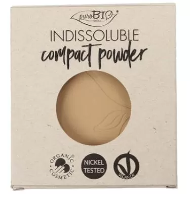 La cipria INDISSOLUBLE di PuroBio Cosmetics opacizza l’incarnato, grazie alla presenza di silica, amido di mais, polvere di riso. Non seccala pelle perché è arricchita daburro di karitè,olio dialbicocca,olio diavocado,olio dimacadamia. Contienevitamina E, ricca diantiossidantidalle proprietà anti-age. Non contienetalco. Il suoeffetto vellutantee la suacolorazione leggeracontribuiscono a rendere il visoperfettamente omogeneo,senza imperfezioni, prolungando laduratadelmakeup. La suaconfezionepiccola e maneggevole dà la possibilità di essereprêt-à-portere la presenza di unospecchiettonella parte interna consente diritoccareil trucco quando si èfuori casa. Il prodotto è Nickel tested, vegan Ok ed è certificato biologico da ccpb. Quantità: (refill) Ingredienti:MICA, ZEA MAYS STARCH (ZEA MAYS (CORN) STARCH)*, SILICA, SQUALANE, ZINC STEARATE, GLYCERYL CAPRYLATE, TOCOPHEROL, PARFUM (FRAGRANCE), ORYZA SATIVA POWDER (ORYZA SATIVA (RICE) POWDER)*, BUTYROSPERMUM PARKII BUTTER (BUTYROSPERMUM PARKII (SHEA) BUTTER)*, MACADAMIA TERNIFOLIA SEED OIL*, PRUNUS ARMENIACA KERNEL OIL (PRUNUS ARMENIACA (APRICOT) KERNEL OIL)*, PERSEA GRATISSIMA OIL (PERSEA GRATISSIMA (AVOCADO) OIL)*, PONGAMIA GLABRA SEED OIL, LIMONENE, CITRONELLOL. MAY CONTAIN +/-: CI 77891 (TITANIUM DIOXIDE), CI 77491 (IRON OXIDES), CI 77492 (IRON OXIDES), CI 77499 (IRON OXIDES). *da agricoltura biologica/ from organic source