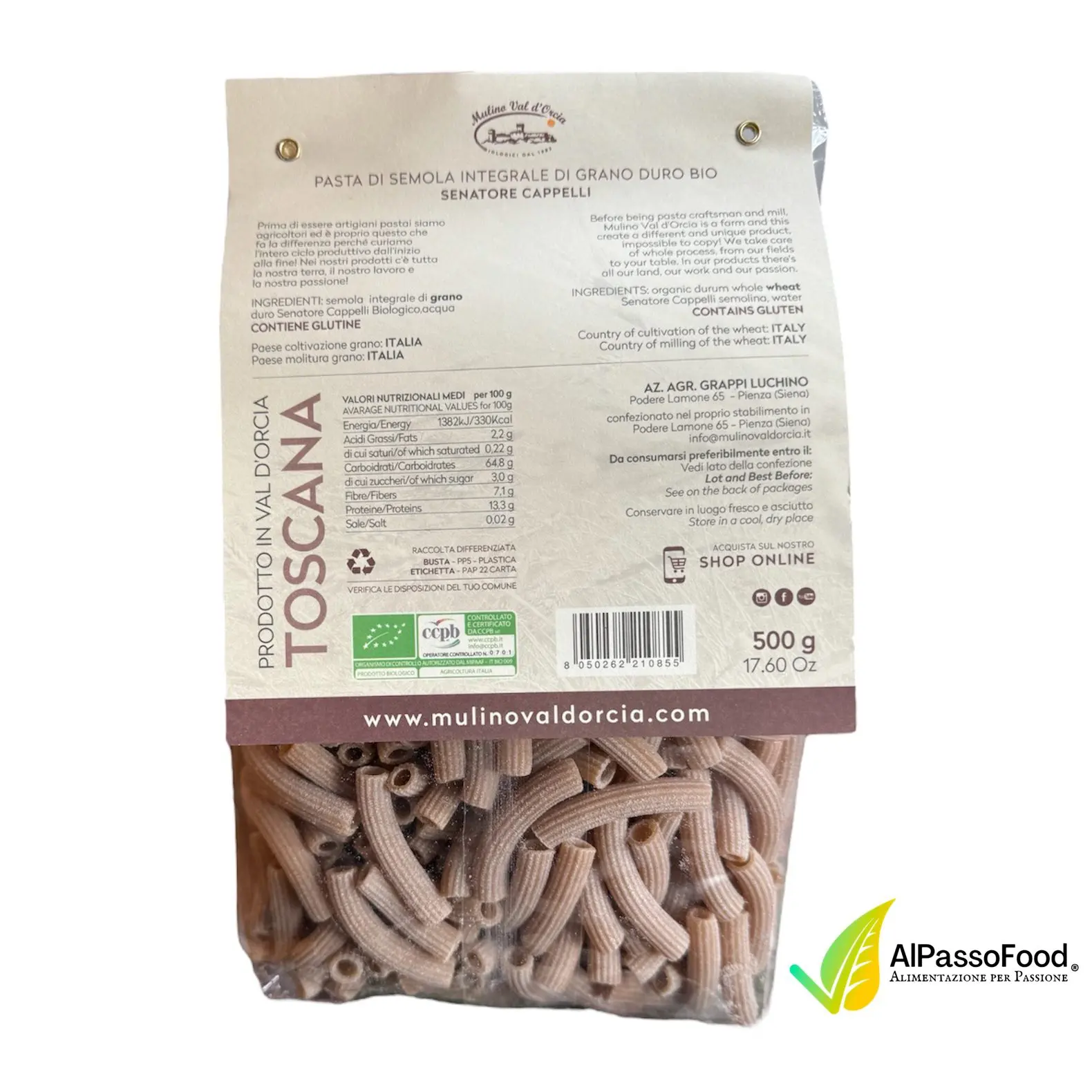 Una Pasta diversa, macinando Integrale la riconosciuta eccellenza del Grano Duro Senatore Cappelli; trafilando al Bronzo il risultato ha caratteristiche peculiari, e uniche: indubbie quelle nutrizionali, grazie anche all’essiccatura lenta, ma più ancora quelle del piacere che regala nel cuocerla e mangiarla.