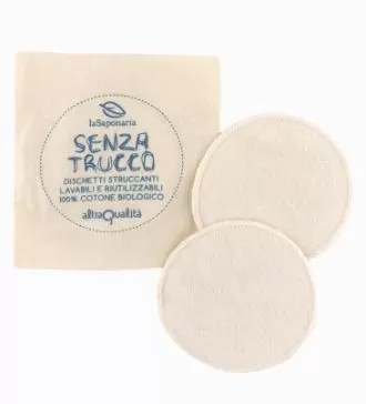 Ideali per rimuovere anche il make-up più ostinato in modo efficace, ecologico e solidale! Con loro sarà amore infinito perché non si buttano dopo l’uso, ma si lavano e si riutilizzano. I dischetti struccanti sono al 100% di cotone naturale non sbiancato, certificato biologico secondo lo standard GOTS. Sono prodotti in Turchia, da una storica azienda fair trade, che utilizza, da più di 50 anni, esclusivamente cotone biologico certificato. La bustina è prodotta in India ed è al 65% di cotone ottenuto riciclando scarti di lavorazione di prodotti in maglieria. Ideali per rimuovere anche il make-up più ostinato in modo ecologico e solidale! Sono state pensate per sostituire i dischetti di cotone usa e getta e si usano allo stesso modo, l’unica differenza è che non si devono buttare dopo l’utilizzo, ma basterà lavarle e riutilizzarle! Il set ; fair trade con sacchettino (12x12cm)