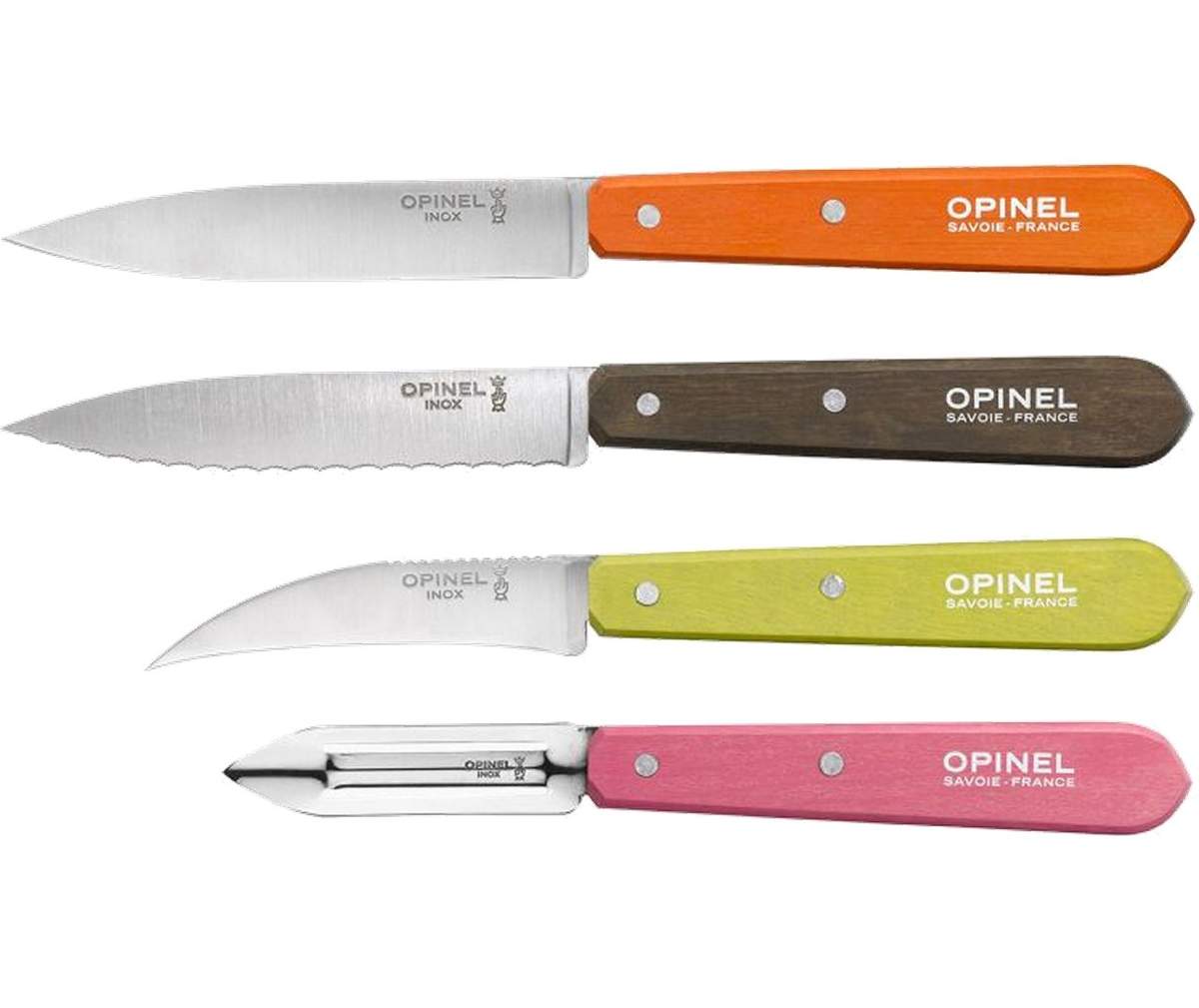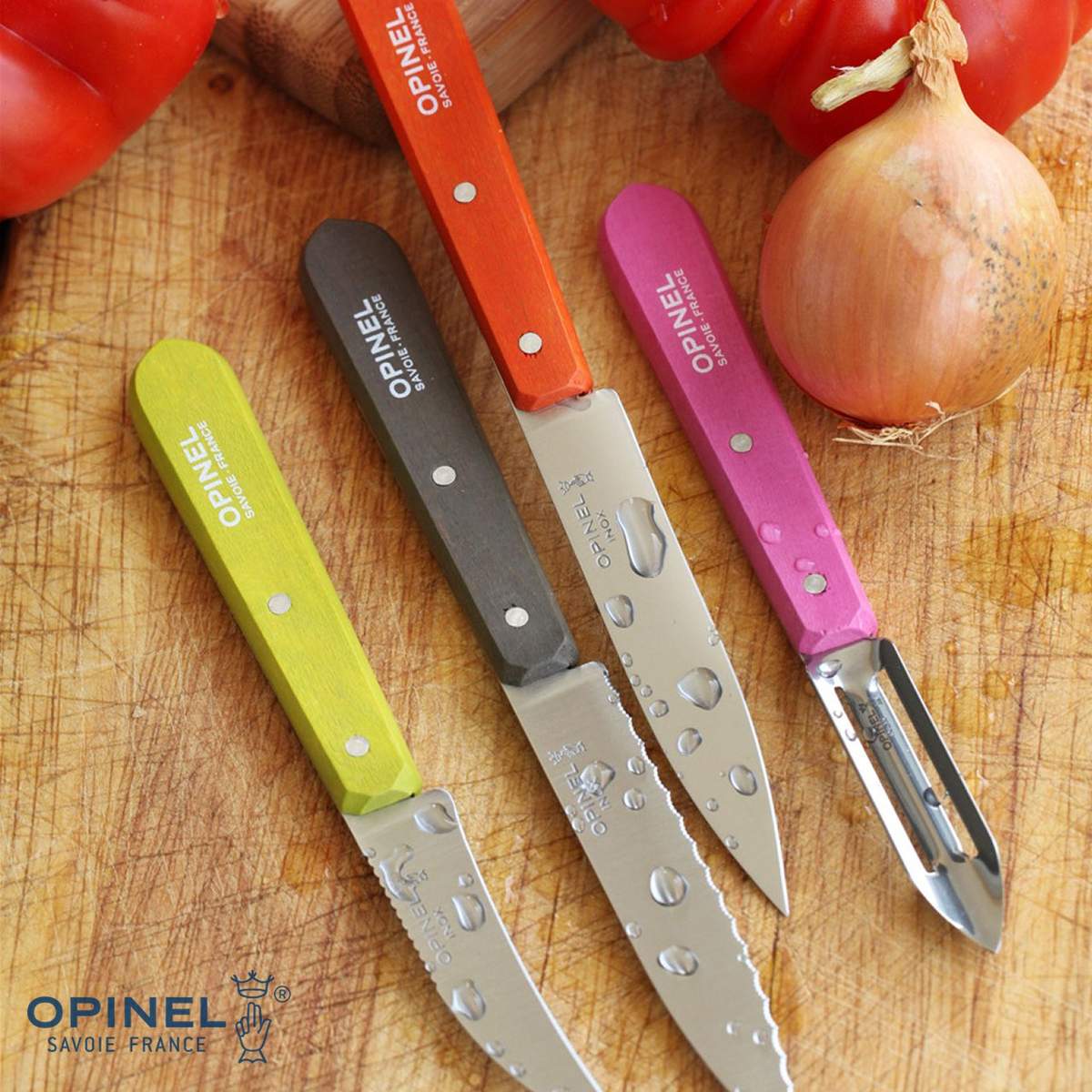 Il set prevede uno spelucchino, un coltello seghettato, un coltello con lama liscia e un pratico pelapatate, realizzati con la qualità dell’acciaio inox di Opinel che risulta estremamente resistente alla corrosione.