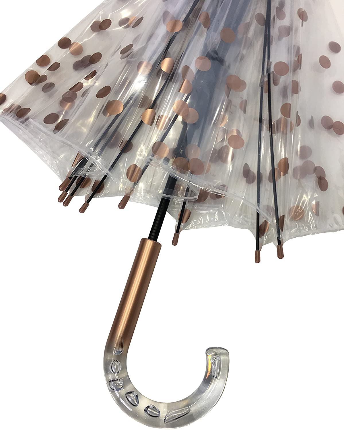 È anche un pratico ombrello e molto facile da usare grazie al suo sistema di apertura automatica. Con il tuo ombrello trasparente a pois non passerai di certo inosservato!