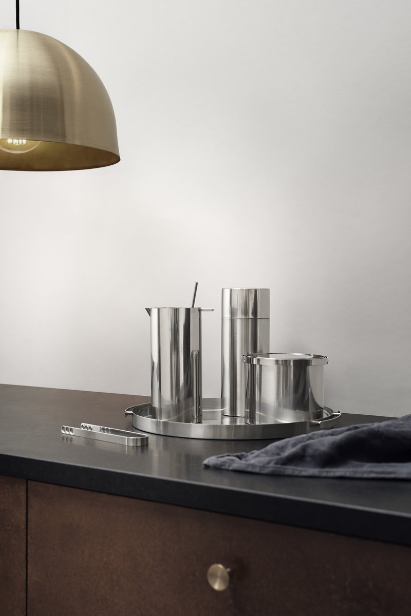 Pinze per ghiaccio dal taglio pulito di Arne Jacobsen in acciaio inox satinato. Le pinze per ghiaccio dal design curato presentano utili fori nella “grip end” per afferrare il ghiaccio e anche per consentire al ghiaccio in eccesso di sciogliersi di rifluire nel secchiello del ghiaccio. Le pinze per ghiaccio si abbinano sia al secchiello piccolo che a quello grande. Un must per il bar di casa.