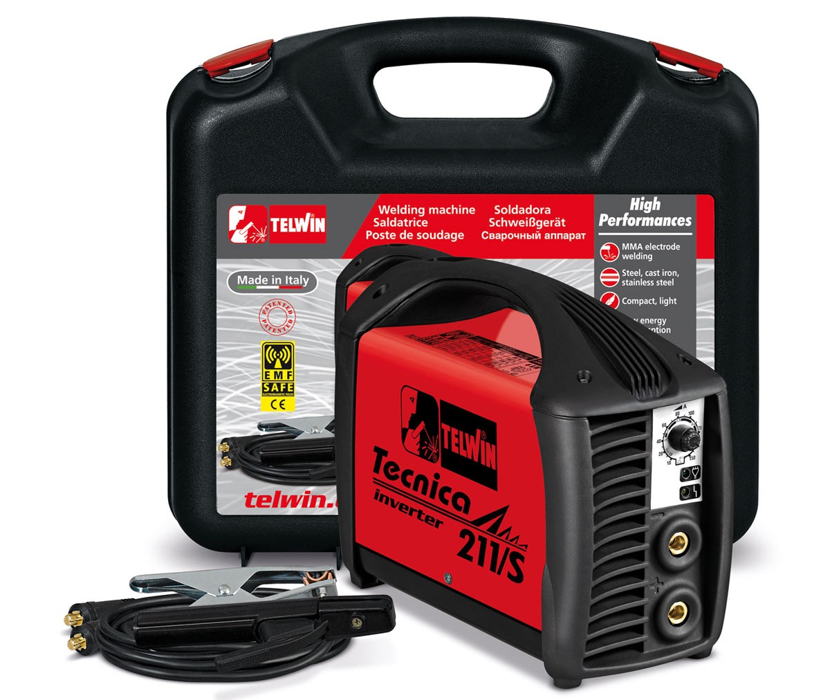 Completa di accessori per la saldatura MMA e valigetta in plastica.