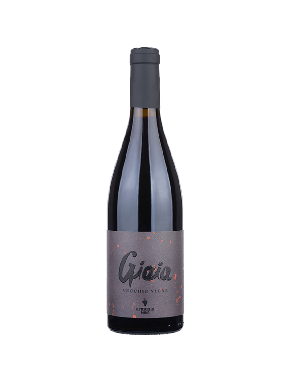 Gioia è un vino rosso prodotto con la vinificazione di uvaggi a bacca nera provenienti da un unico vitigno di età superiore ai 70 anni. Gli uvaggi vengono vendemmiati manualmente e passano poi a svolgere una lunga macerazione a contatto con le bucce della durata di almeno 4 o 5 mesi in botti grandi di Slavonia. Una volta effettuata la svinatura questa etichetta della linea Vecchie Vigne – i cui vini vengono prodotti con gli uvaggi provenienti da suoli di tufo e calcare – affina per un anno in cemento e per un altro anno in bottiglia.
