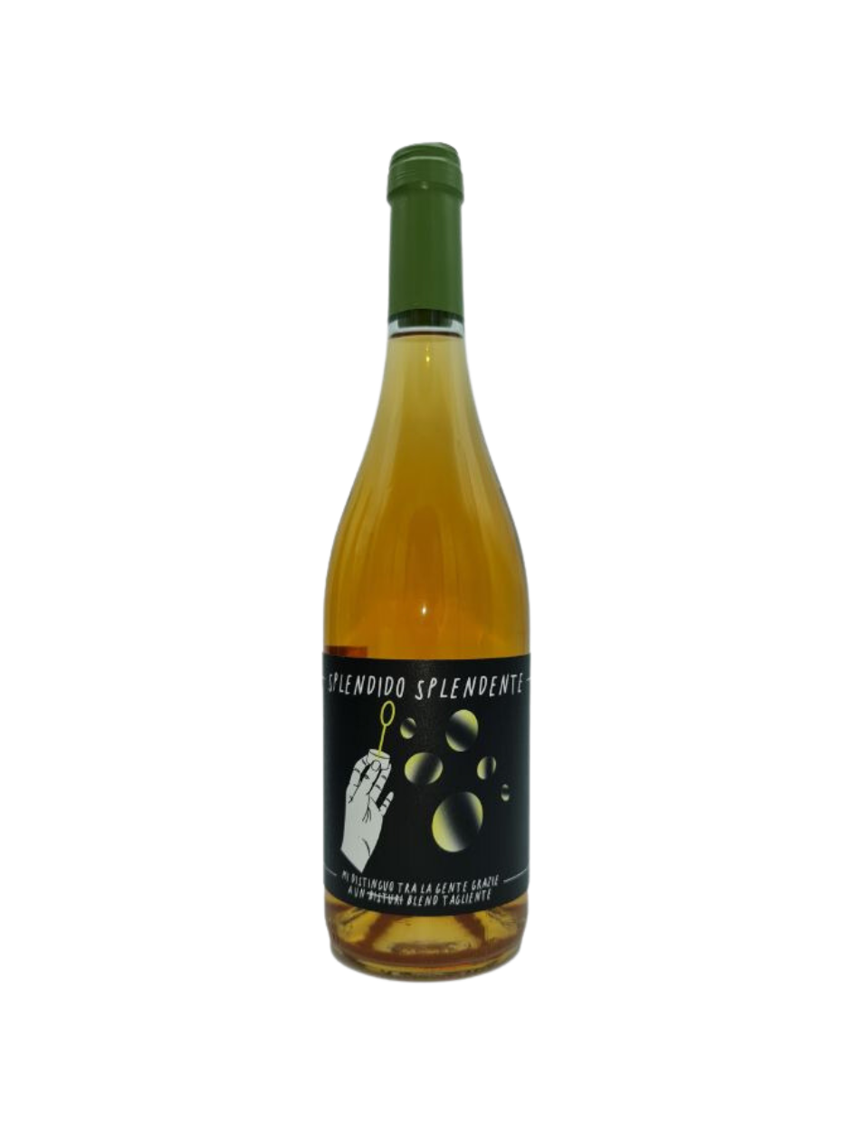 Splendido Splendente è un orange wine ottenuto da due uvaggi a bacca bianca tipici e autoctoni delle cantine Raina e Armonia, raramente utilizzati con macerazioni. Proprio per andare contro a questa tendenza, gli uvaggi forniti da Raina macerano in anfore di terracotta per circa sei mesi e nel frattempo la percentuale rimanente dopo 24 ore di macerazione inizia la fermentazione spontanea con i raspi in legno di acacia.