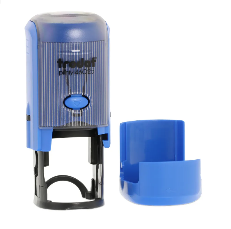 TRODAT PRINTY 46025 Timbro Autoinchiostrante Rotondo Blu Cielo Diametro Ø 25 mm Testo a 5 righe con Cartuccia Nera