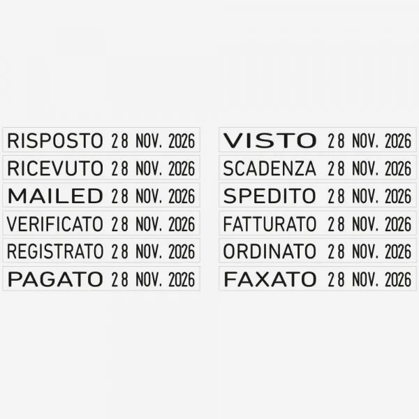 Datario auto-inchiostrante con 12 differenti applicazioni d’ufficio in un unico timbro. Il Trodat Printy 4817 è pronto all’uso con le 12 parole più comunemente usate in ufficio: RISPOSTO, RICEVUTO, MAILED, VERIFICATO, REGISTRATO, PAGATO, VISTO, SCADENZA, SPEDITO, FATTURATO, ORDINATO, FAXATO. Gira con facilità le rotelline della banda e seleziona la frase che ti serve. Il testo viene timbrato davanti alla data. La data è alta 3.8 mm ed è nel seguente formato: giorno, mese (in lettere) e anno. La dimensione dell’impronta è di 50 x 5 mm. Tamponi ad inchiostro di ricambio compatibili 6/4817 sono disponibili in nero, blu, rosso, verde e viola per aumentare ulteriormente la vita del tuo timbro auto-inchiostrante. Uno dei prodotti più venduti della Trodat, il timbro è climaticamente neutro con il 70% di plastica riciclata.