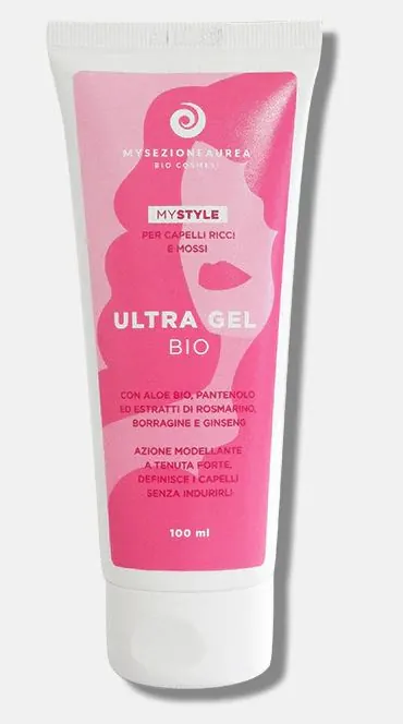 Ultra Gel con aloe bio, pantenolo ed estratti di rosmarino, borragine e ginseng ad azione modellante a tenuta forte: definisce i capelli senza indurirli