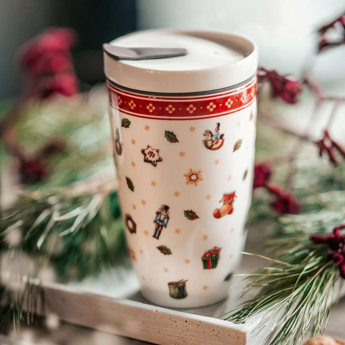 To Go è la collezione per tutti coloro che sono spesso fuori casa e vogliono godersi del cibo sano anche in trasferta rinunciando alla plastica ma non all’atmosfera natalizia. Nelle tazze e bicchieri di porcellana e nelle ciotole a tenuta stagna i cibi restano freschi e mantengono il sapore dal mattino fino alla sera. Nella pratica mug da viaggio puoi portare sempre con te le tue bevande preferite, calde o fredde, e una bellissima atmosfera natalizia! Un aspetto garantito dal decoro con motivi nostalgici della collezione “Toy’s Delight”. Grazie alla guarnizione in silicone non uscirà neanche una goccia, mentre la fascia isolante vi proteggerà dal calore eccessivo durante il trasporto. Gusto autentico e inalterato in viaggio e senza inquinare, grazie alla pratica porcellana Premium To Go di Villeroy & Boch. Godetevi il vostro caffè in modo ecologico e senza plastica anche quando siete in viaggio.