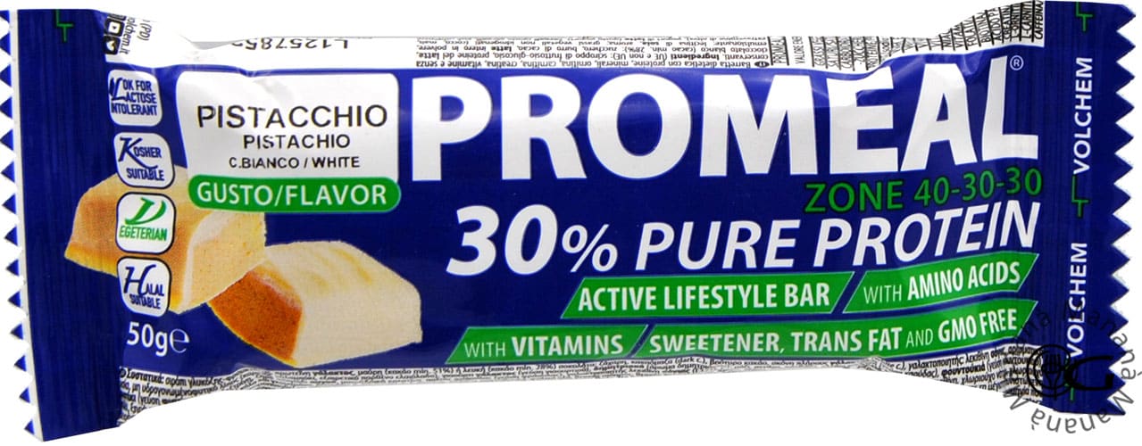 Barretta naturale bilanciata secondo la ripartizione calorica 40-30-30 (% carboidrati-proteine-grassi) della dieta a zona. L’esclusiva formulazione di Promeal Zone 40-30-30 favorisce l’effetto di riduzione del grasso. I suoi ingredienti naturali tutti di primissima scelta sono bilanciati e omogeneizzati in modo da essere facilmente digeribili e fornire rapidamente energia, tonificando al tempo stesso la massa magra: